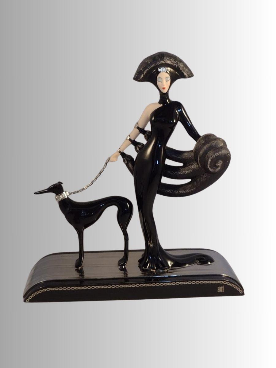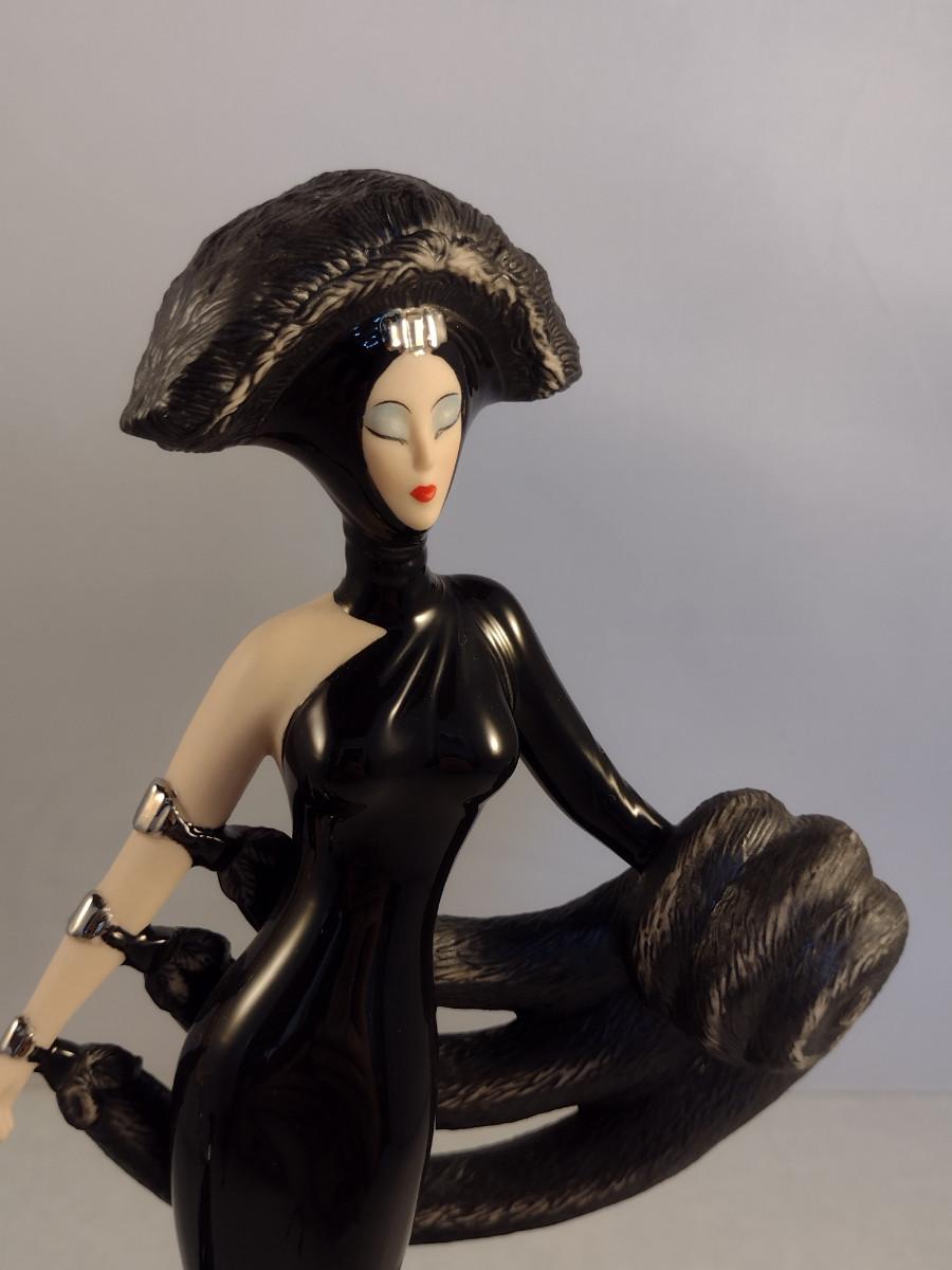 House of Erte Numbered, Limited Edition, Hand Painted Porcelain 'Symphony in Black' Art Deco Figurine- No. M5166