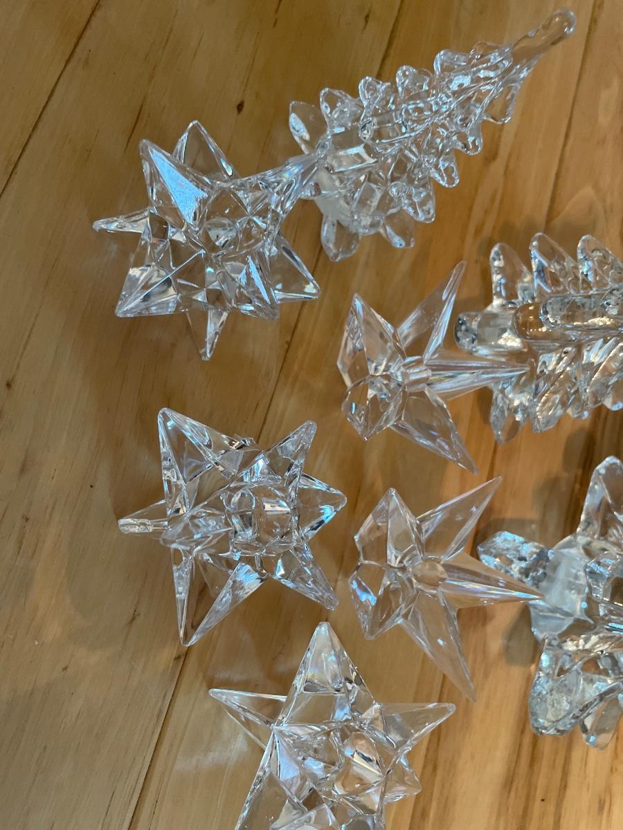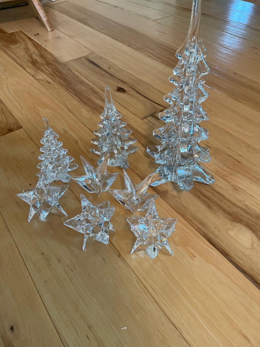 3 trees different sizes and 5 star crystal candle holders