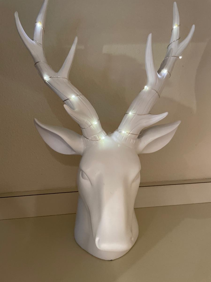Antlers light up on white ceramic deer
