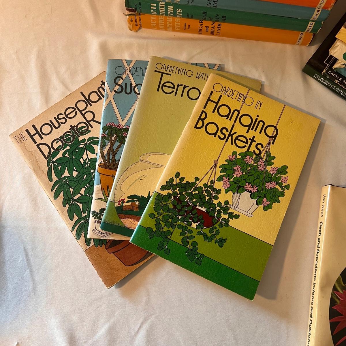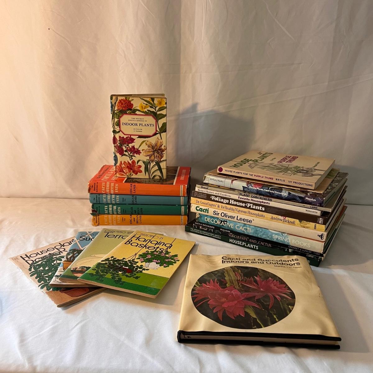 This lot comes with about 20 books on various house plants and succulents. A handful of books in the collection are from the 70s. The largest book is titled “Houseplants” and measures 8.5” x 11.25”H. Shipping available.
