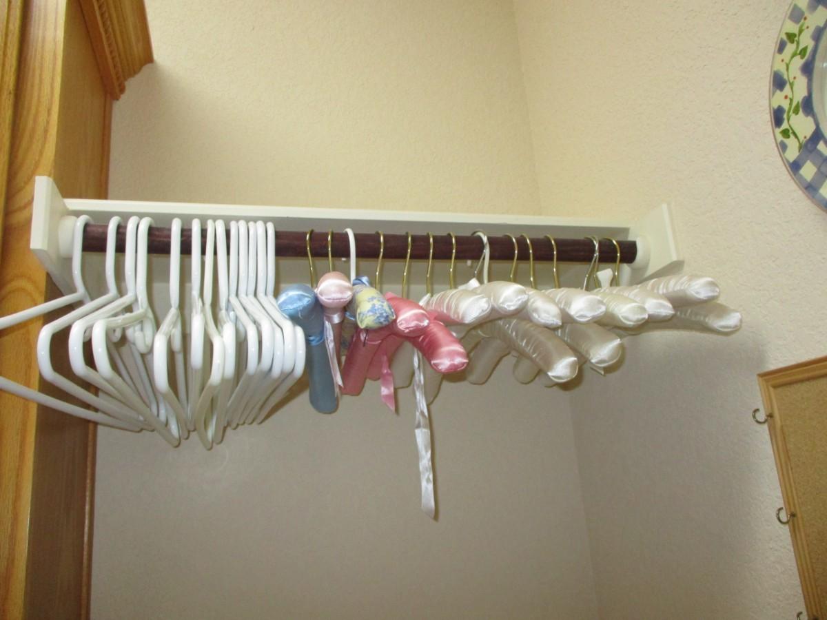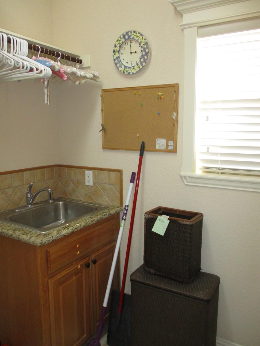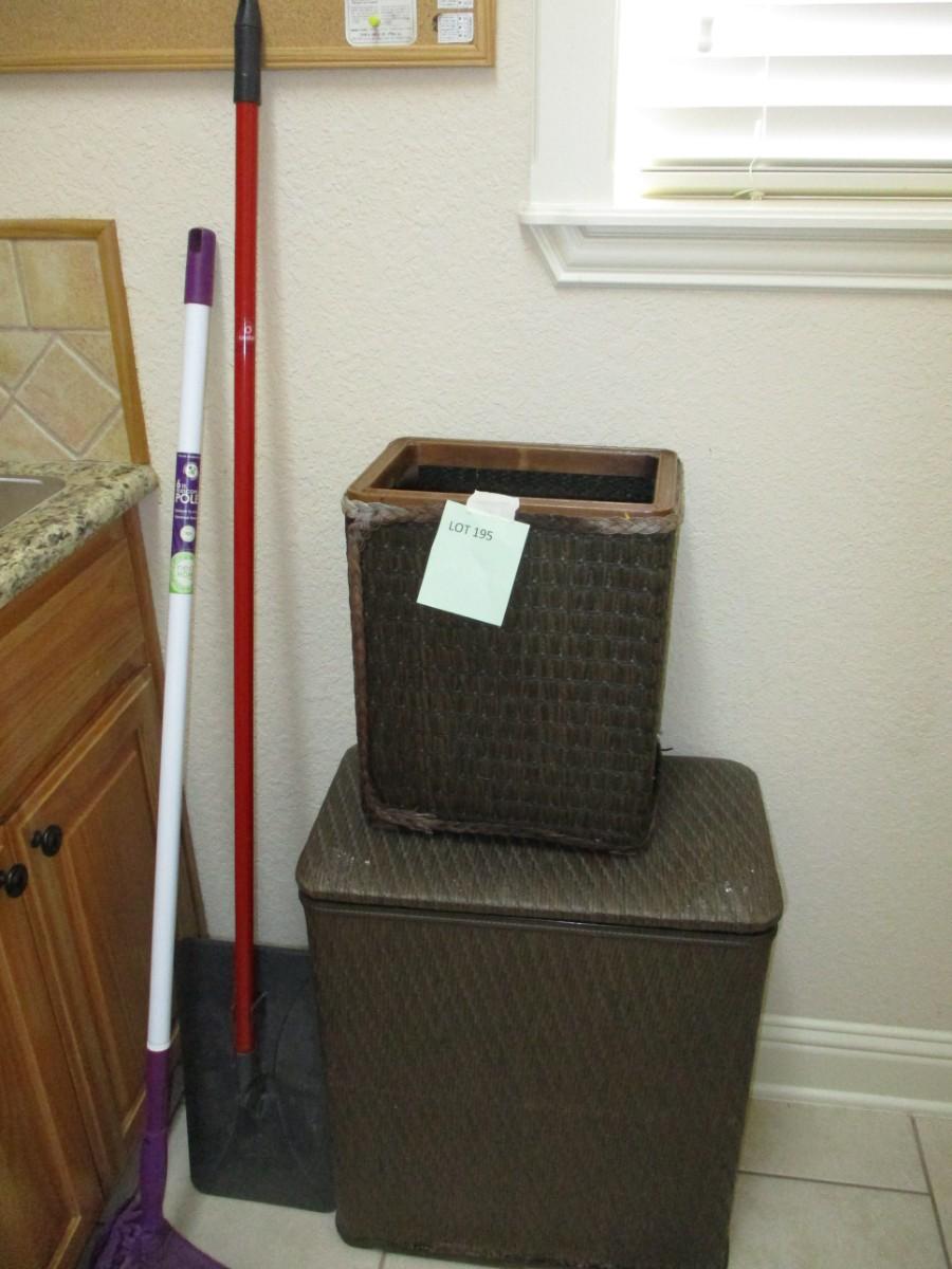 Hamper, Wastebasket, Cork board, 6ft Telescopic Pole. Time Designs Quartz clock. Hangers