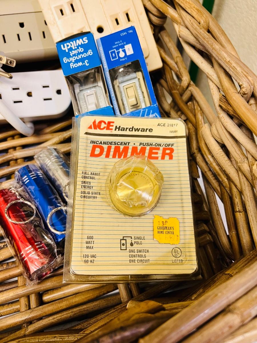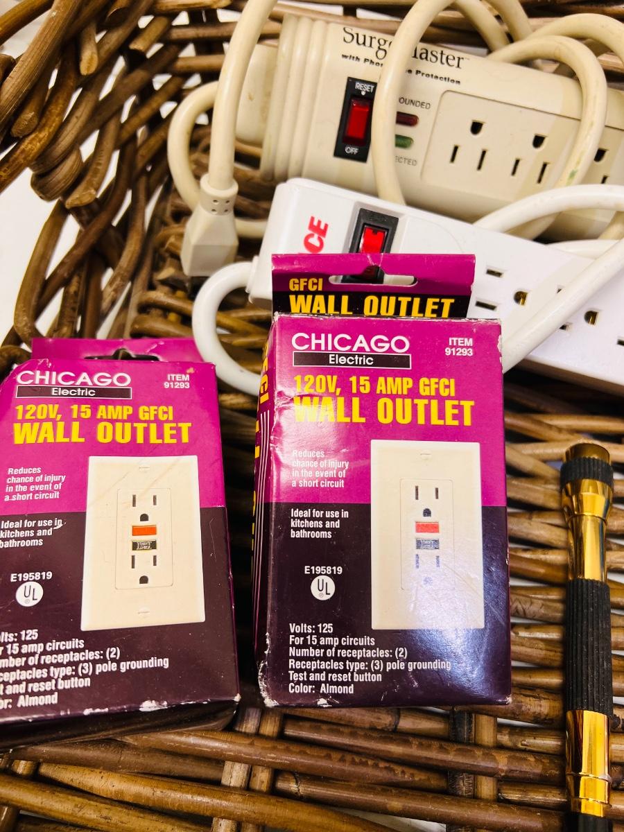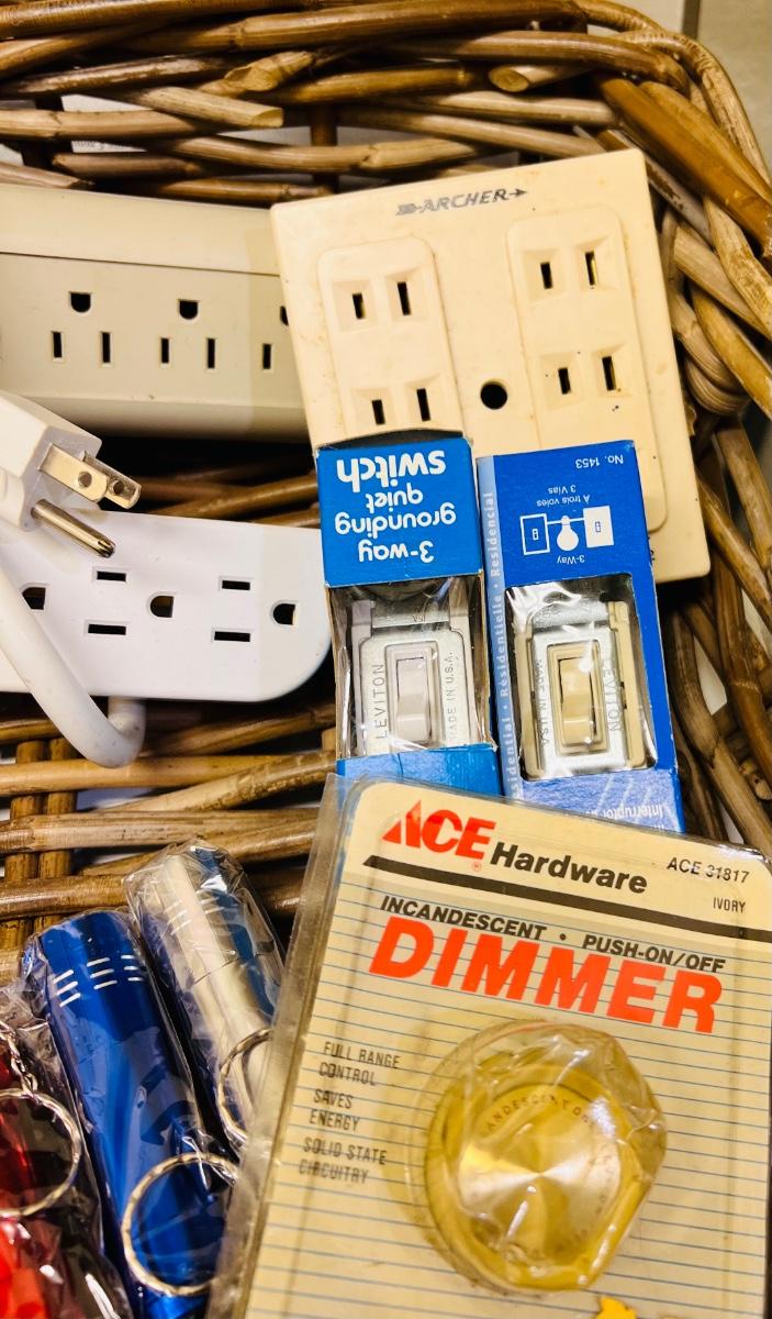 Household lot includes power cords, wall outlets, and flashlights. Please note that basket is not included.