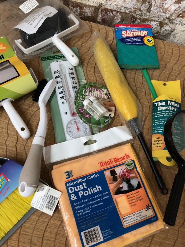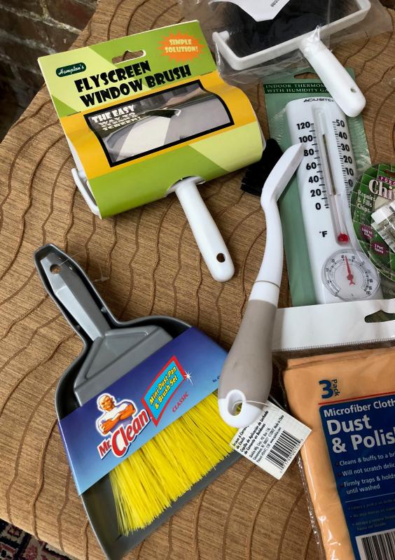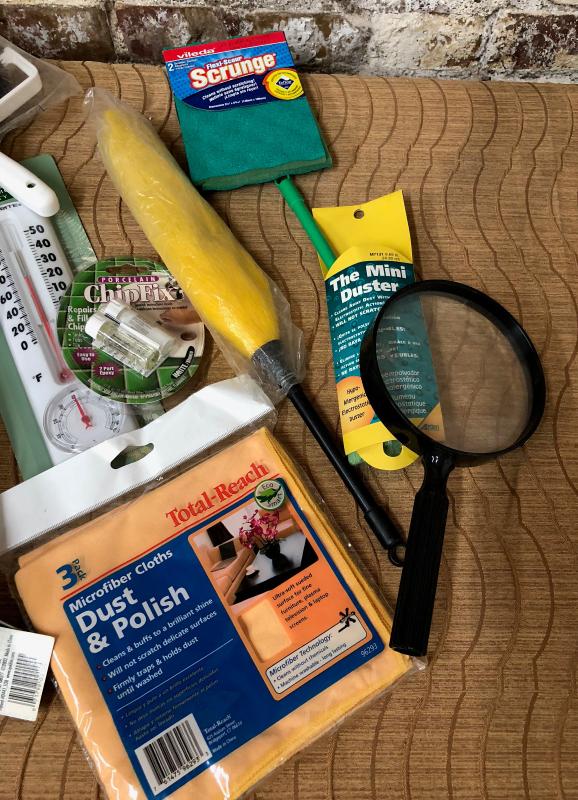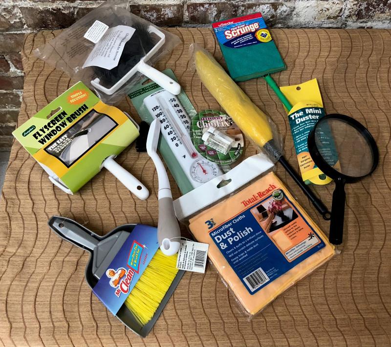 Household cleaning items as shown..new condition..also includes a magnifying glass and thermometer...