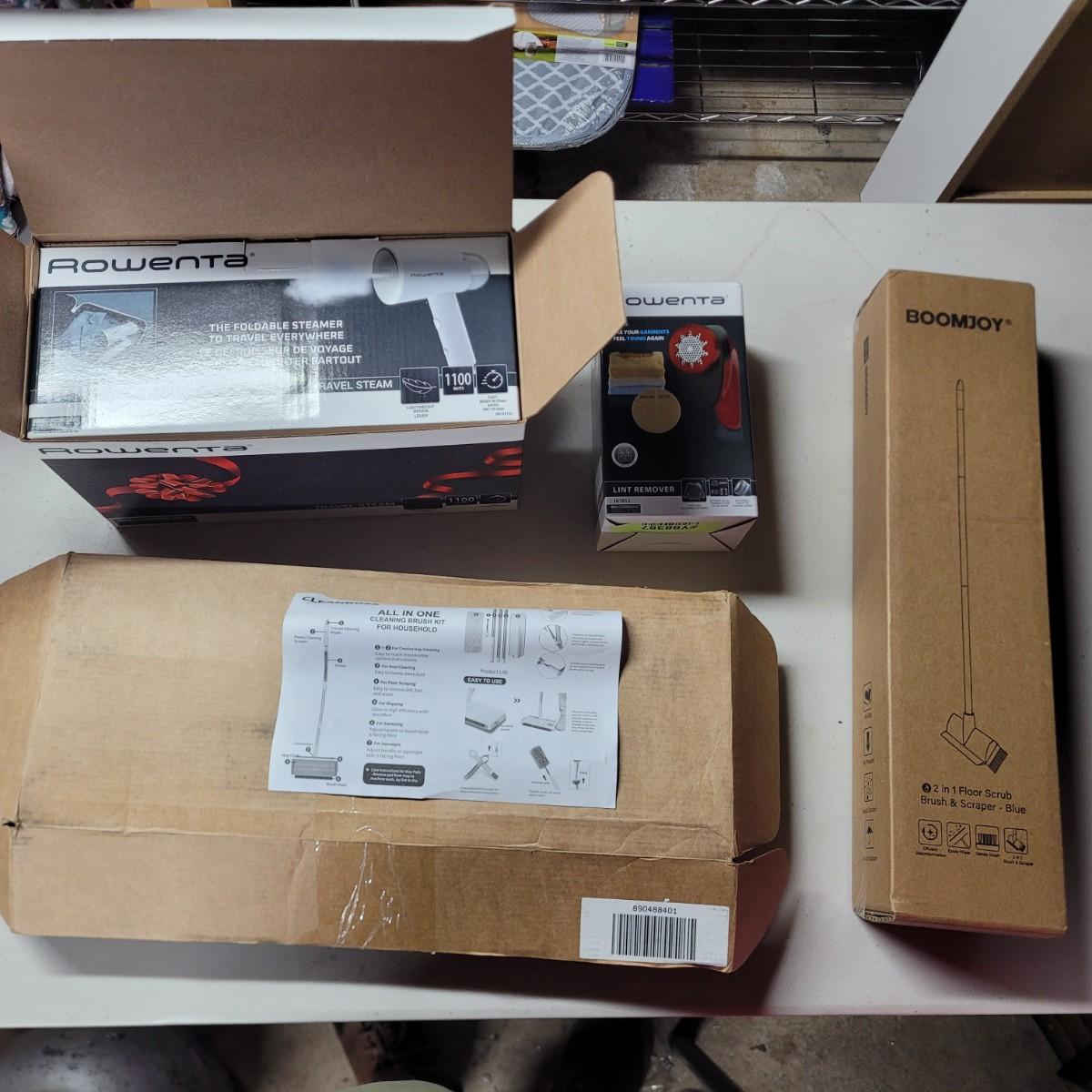 See photos, travel steamer, lint remover, cleaning brush, floor scrub brush and scraper
