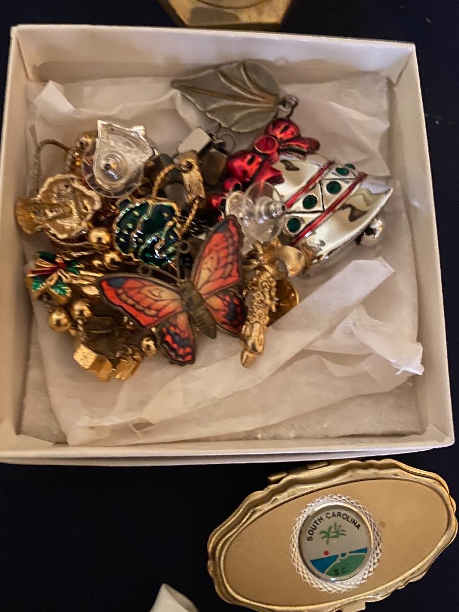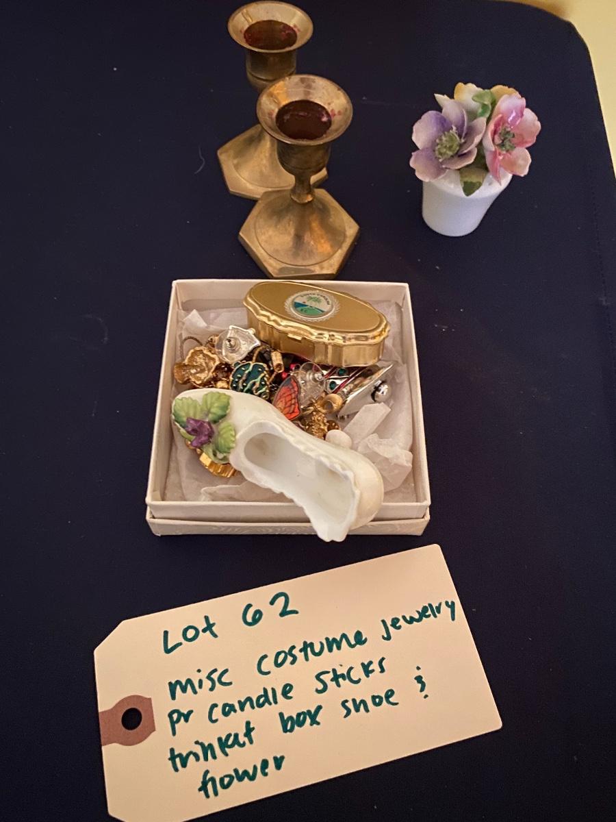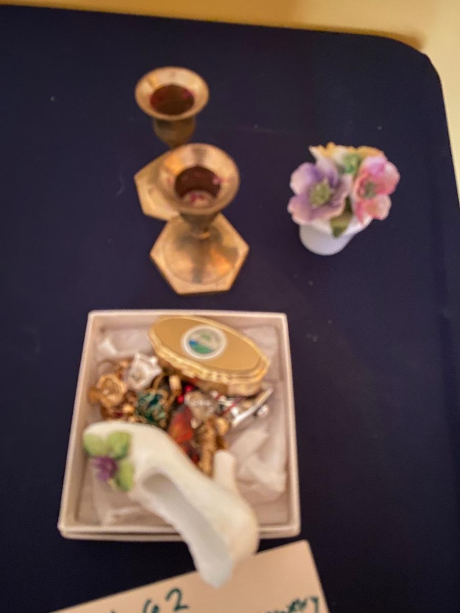 Misc Costume Jewlery, Trinket Box, Collectable Shoe, and Flower