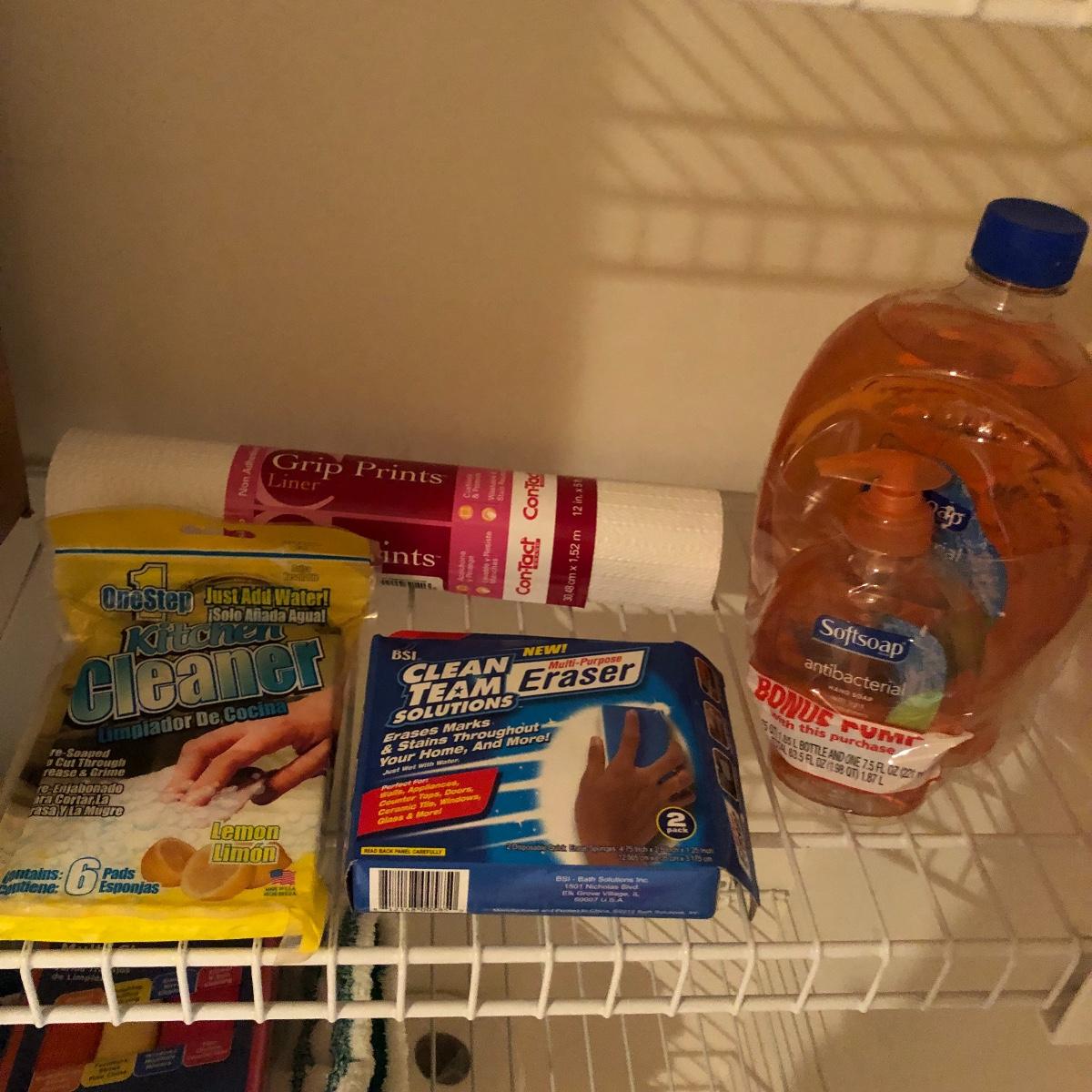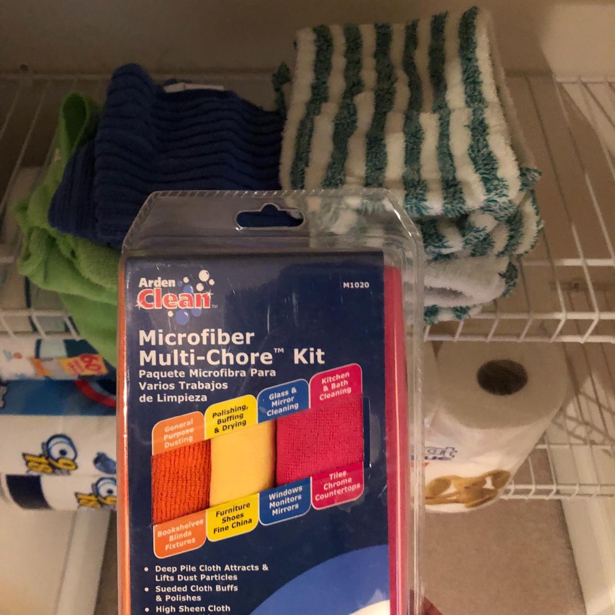 Cleaning supplies, microfiber clothes, bath tissue and more in this handy household necessities lot.