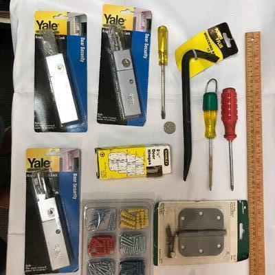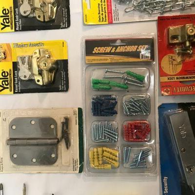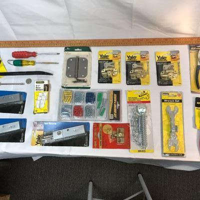 Household tool and hardware lot. Most items are new in package. #022-0419