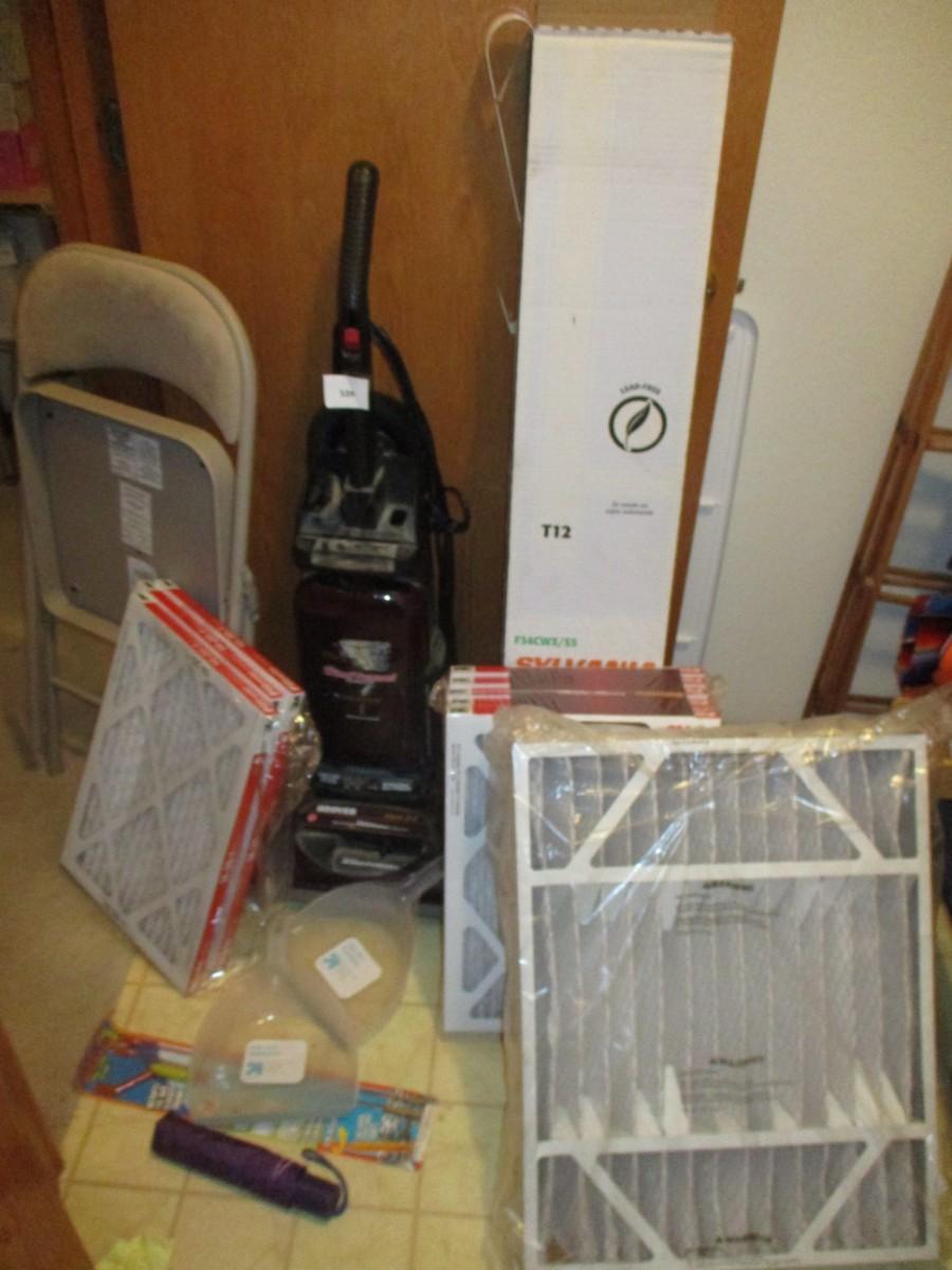 Folding Chair, Vacuum works, Sylvania Bulbs