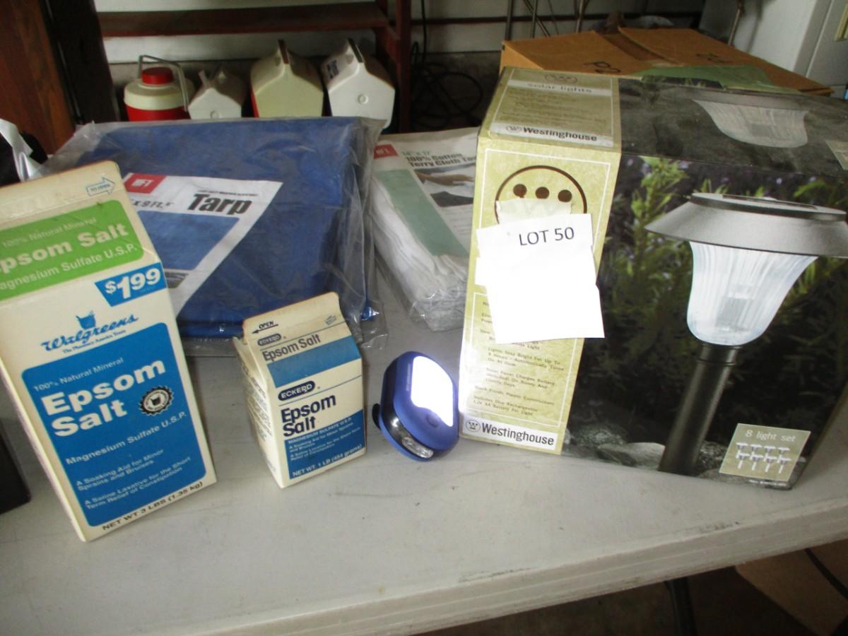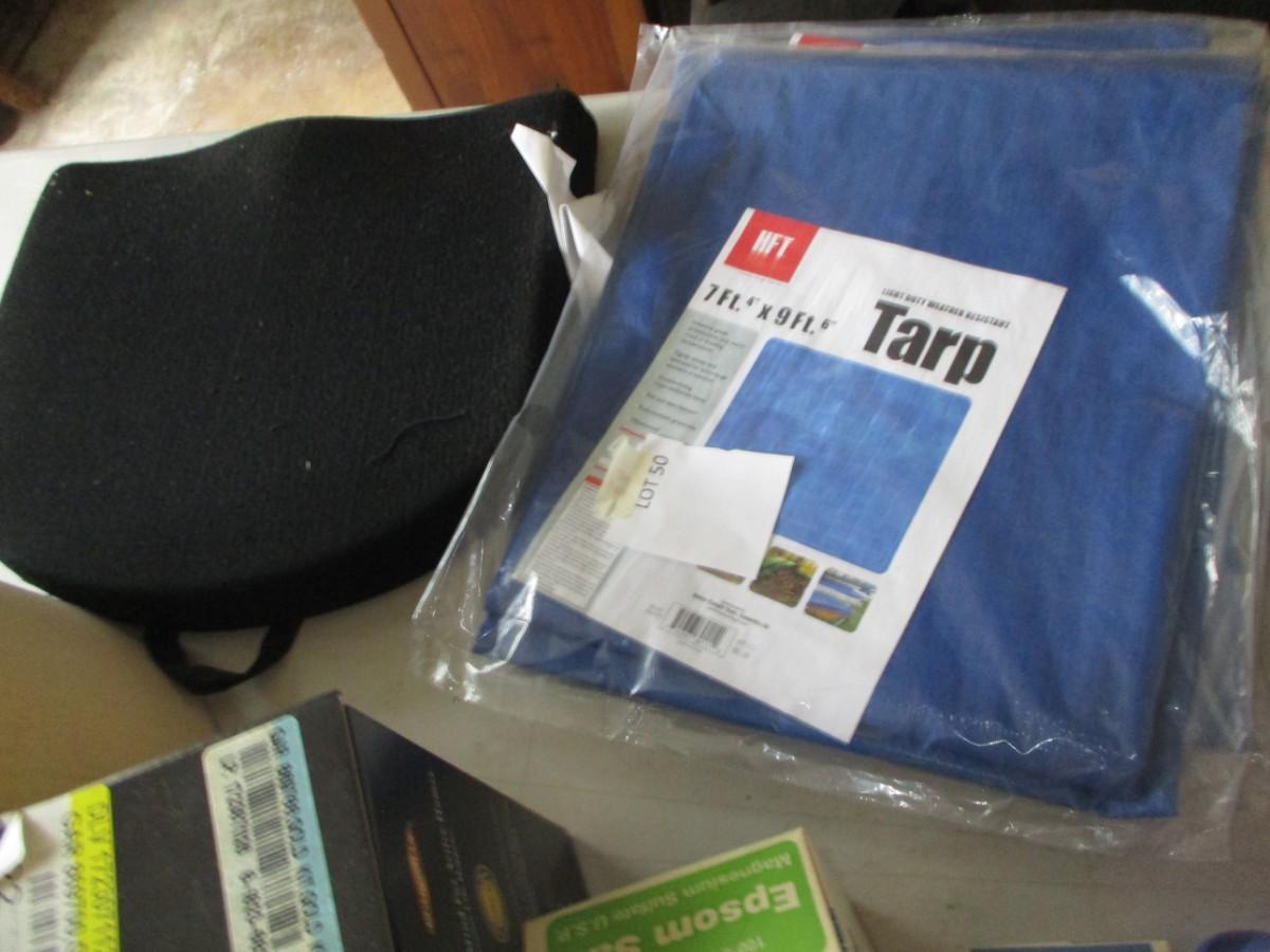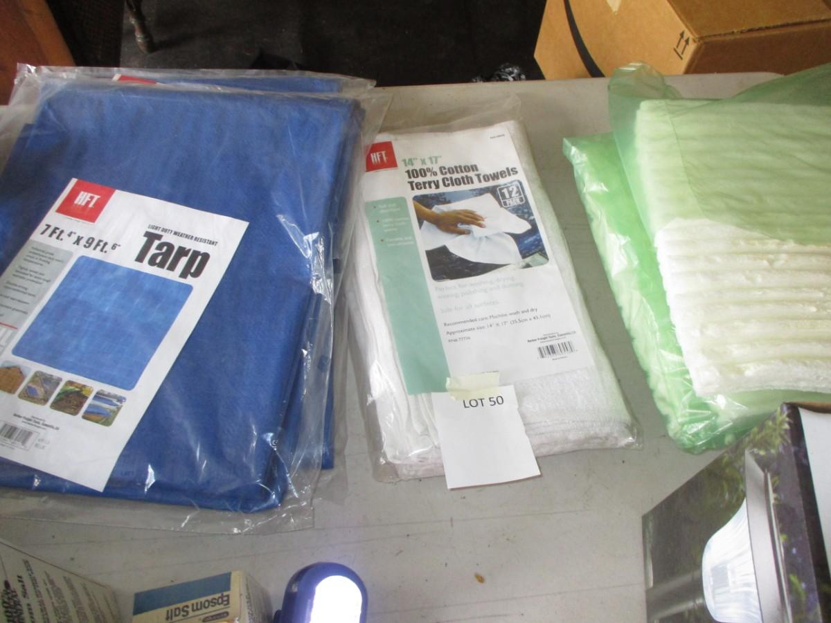 Tarp, Seat cushion, Furniture care kit, solar light, lamp shade, terry towels new in package