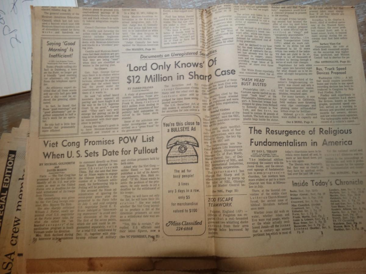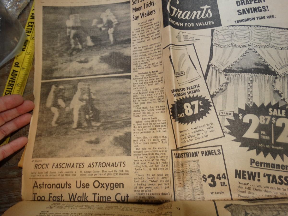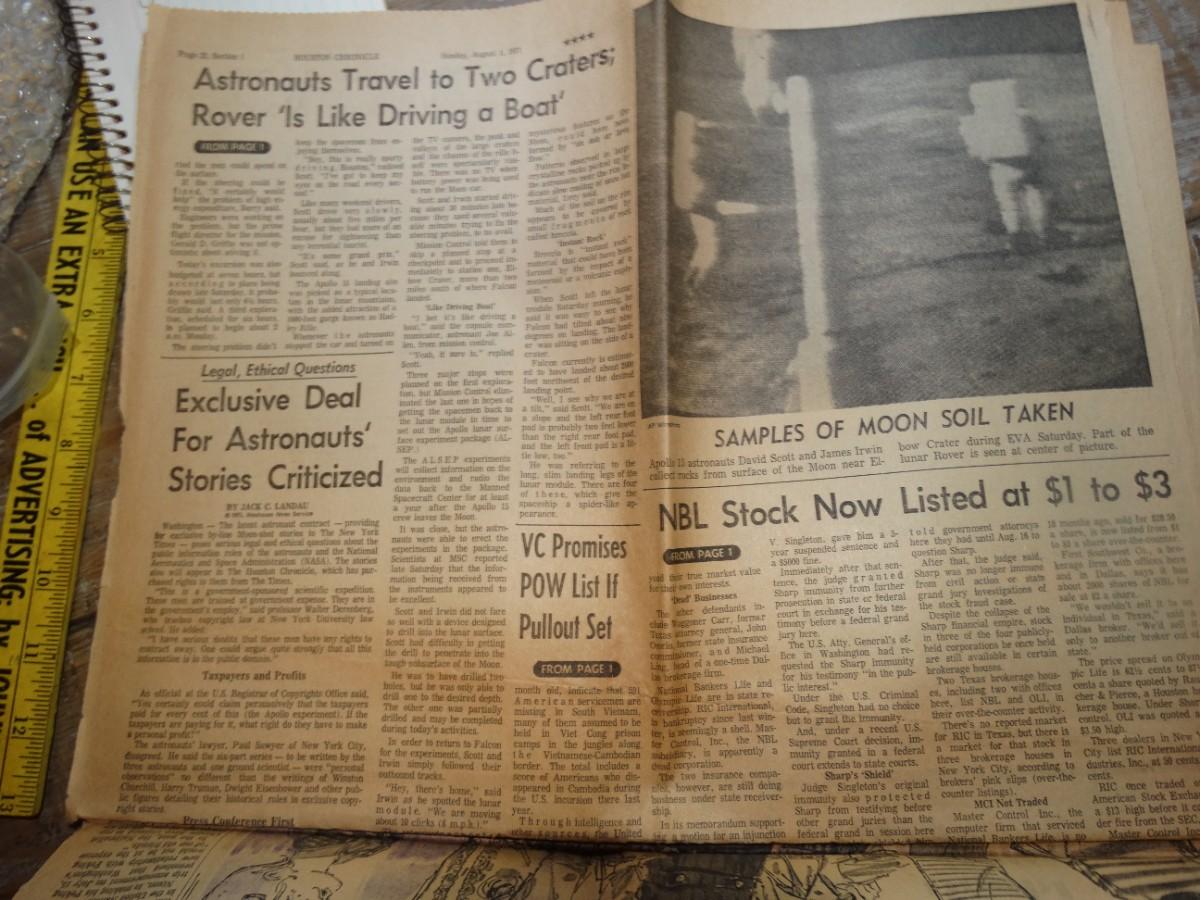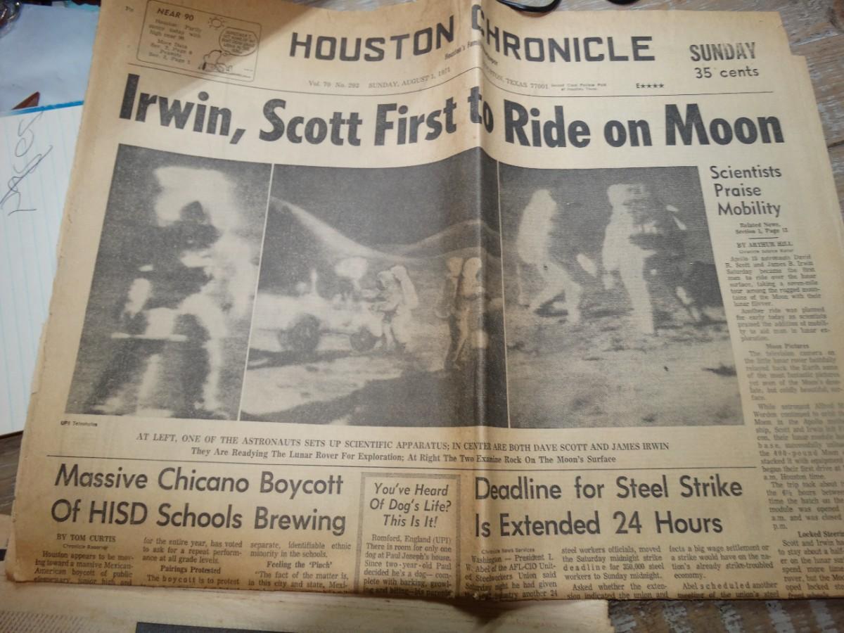 Houston Chronicle 1971 - Irwin, Scott first to Ride on Moon Newspaper Article