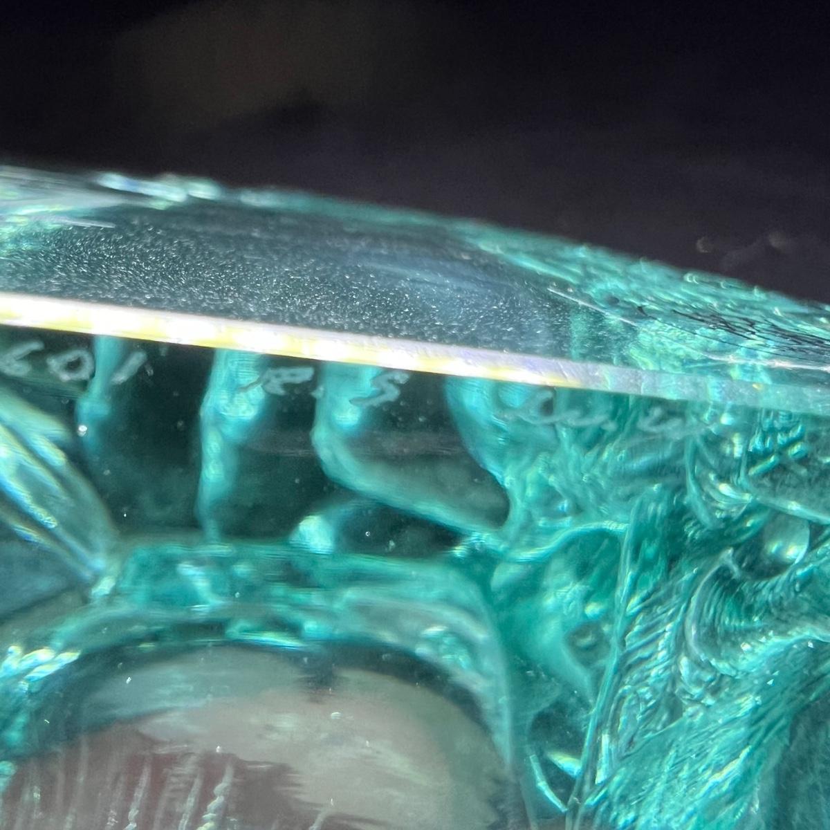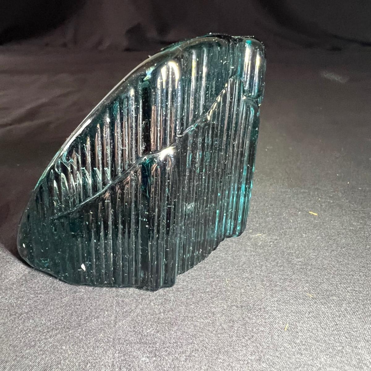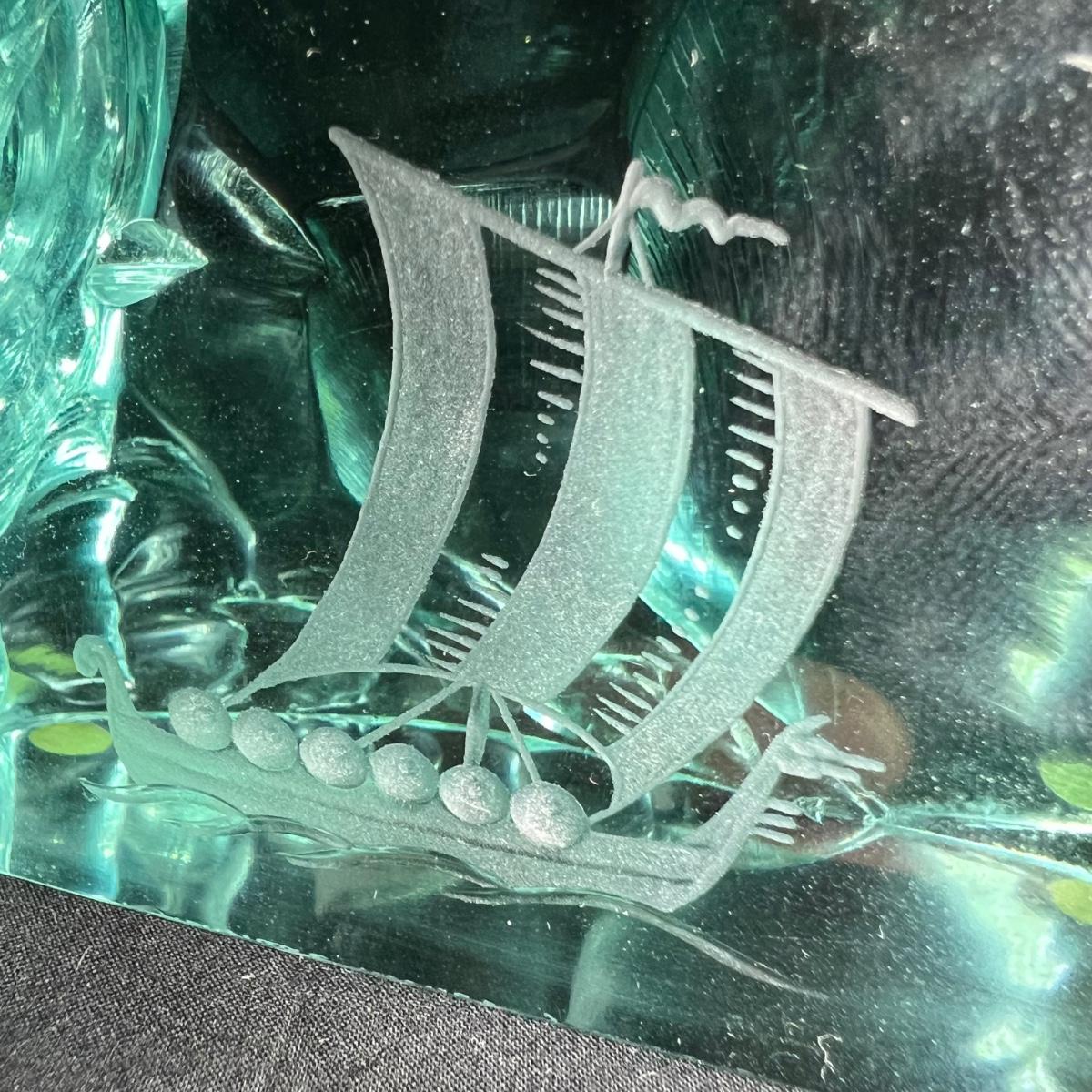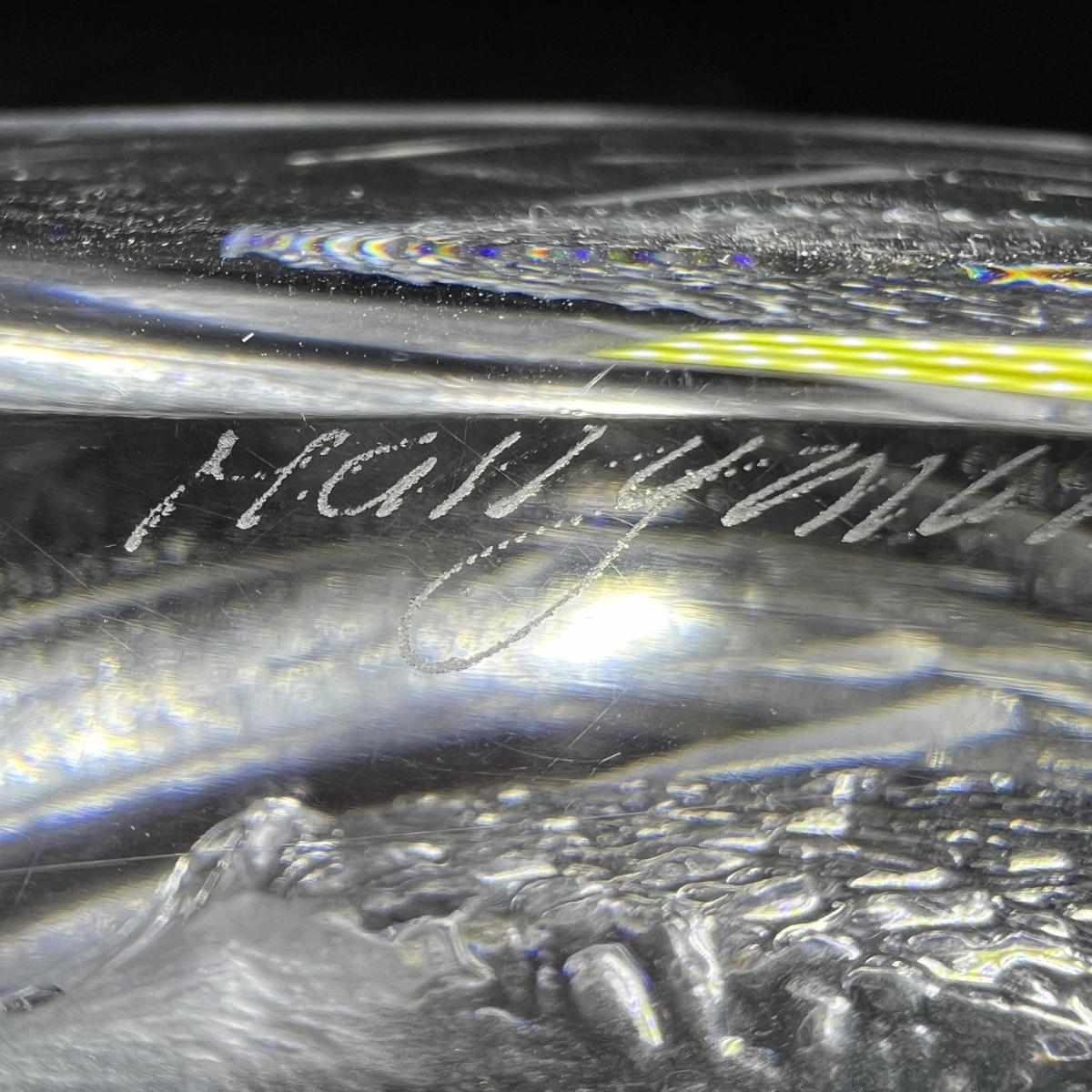 This collection of five glass paperweights includes a blue etched Viking ship that is signed and has its Hovmantorp sticker; the signature is extremely small and hard to read but the words Handmade and Sweden are decipherable. The two birds of prey are possibly lead crystal and Mats Jonasson, but no signatures or stickers; the hawk is the largest item and measures 5” x 2” x 6.5”H. The hedgehog is signed, the fifth paper weight which is a pretty blue color has no markings.