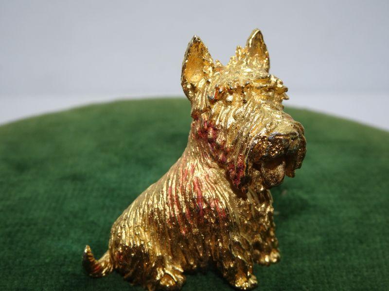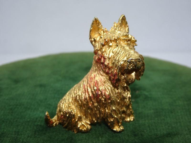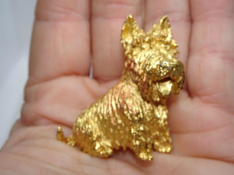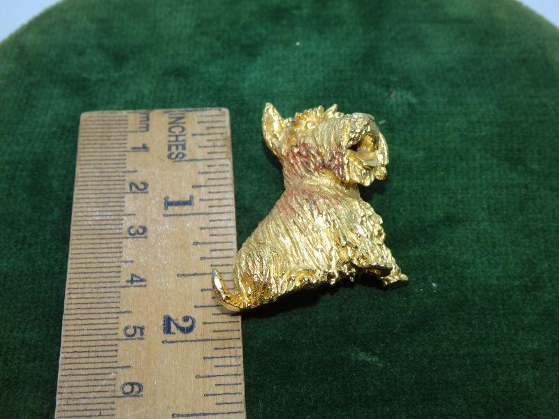 "How Much is that Doggie in the Window" Schnauzer or Scottie Dog Brooch, Gold Tone Signed Trifari