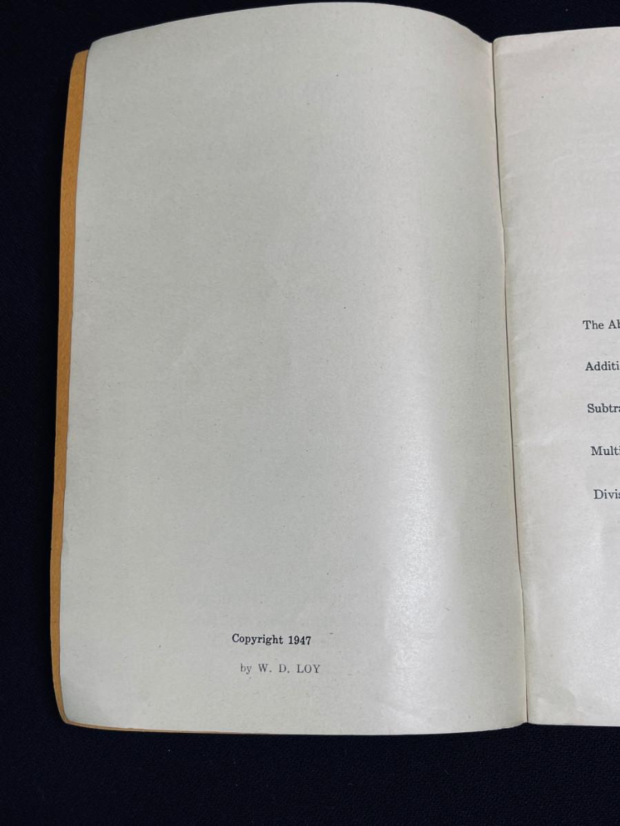 DESCRIPTION: This small vintage soft cover book by W.D. Loy was published in Washington D.C. in 1947. This is a great way to bone up on your antique computer skills! "Make Arithmatic Interesting"