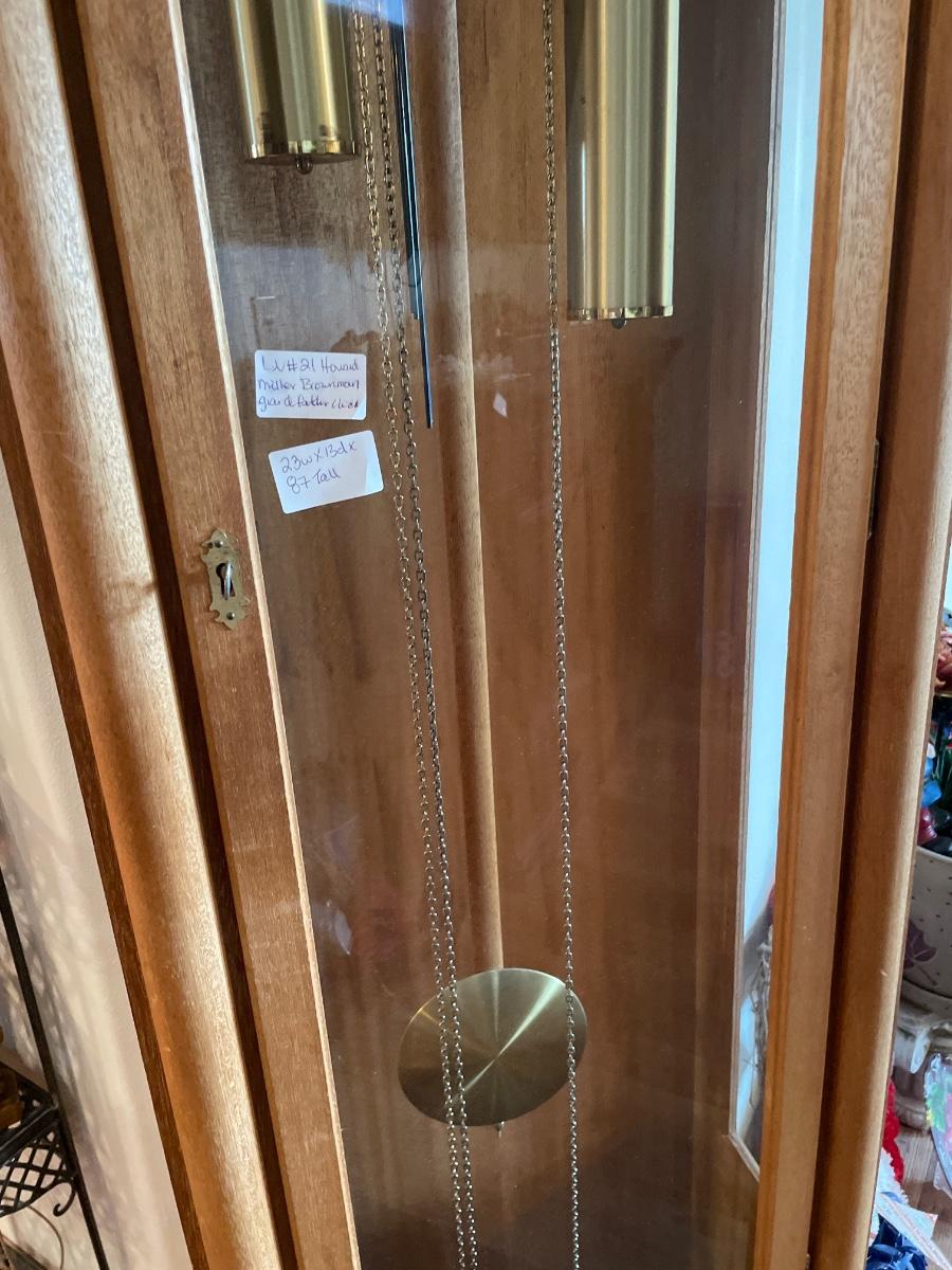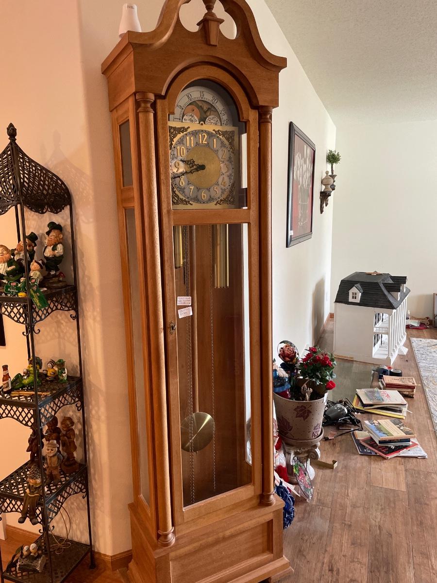ONE OF RHE CLOCKS WEIGHTS HAS FALLEN OFF. LET ME KNOW IF YOU WANT TO REMOVE YOUR BID.