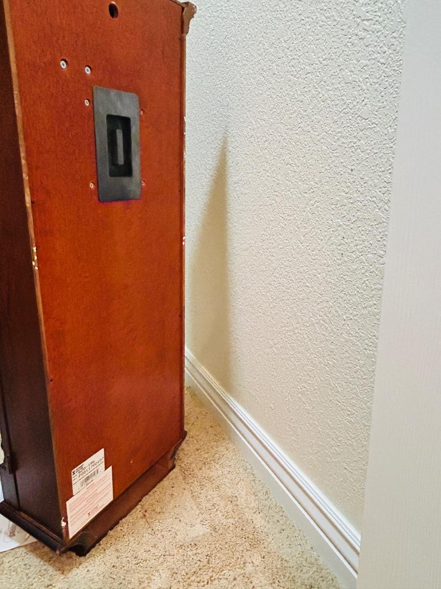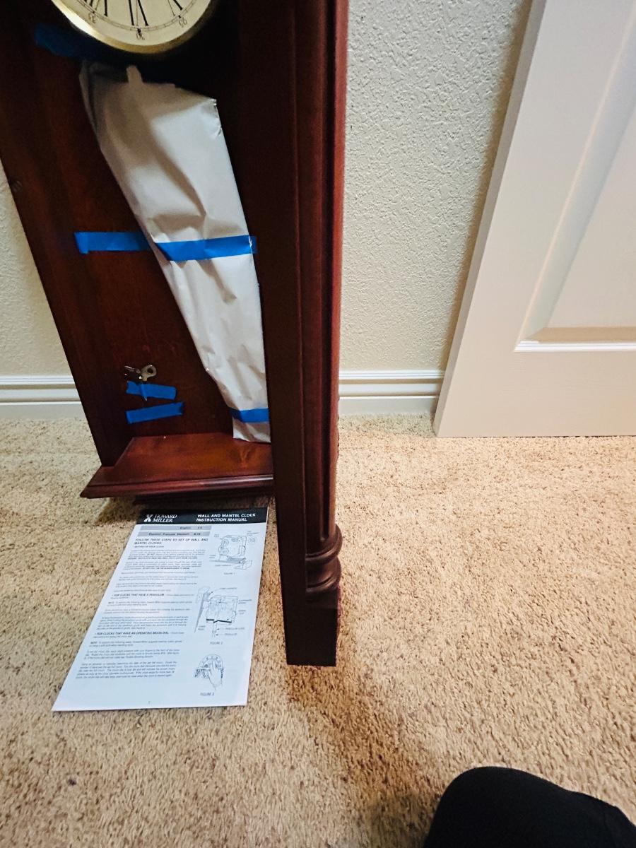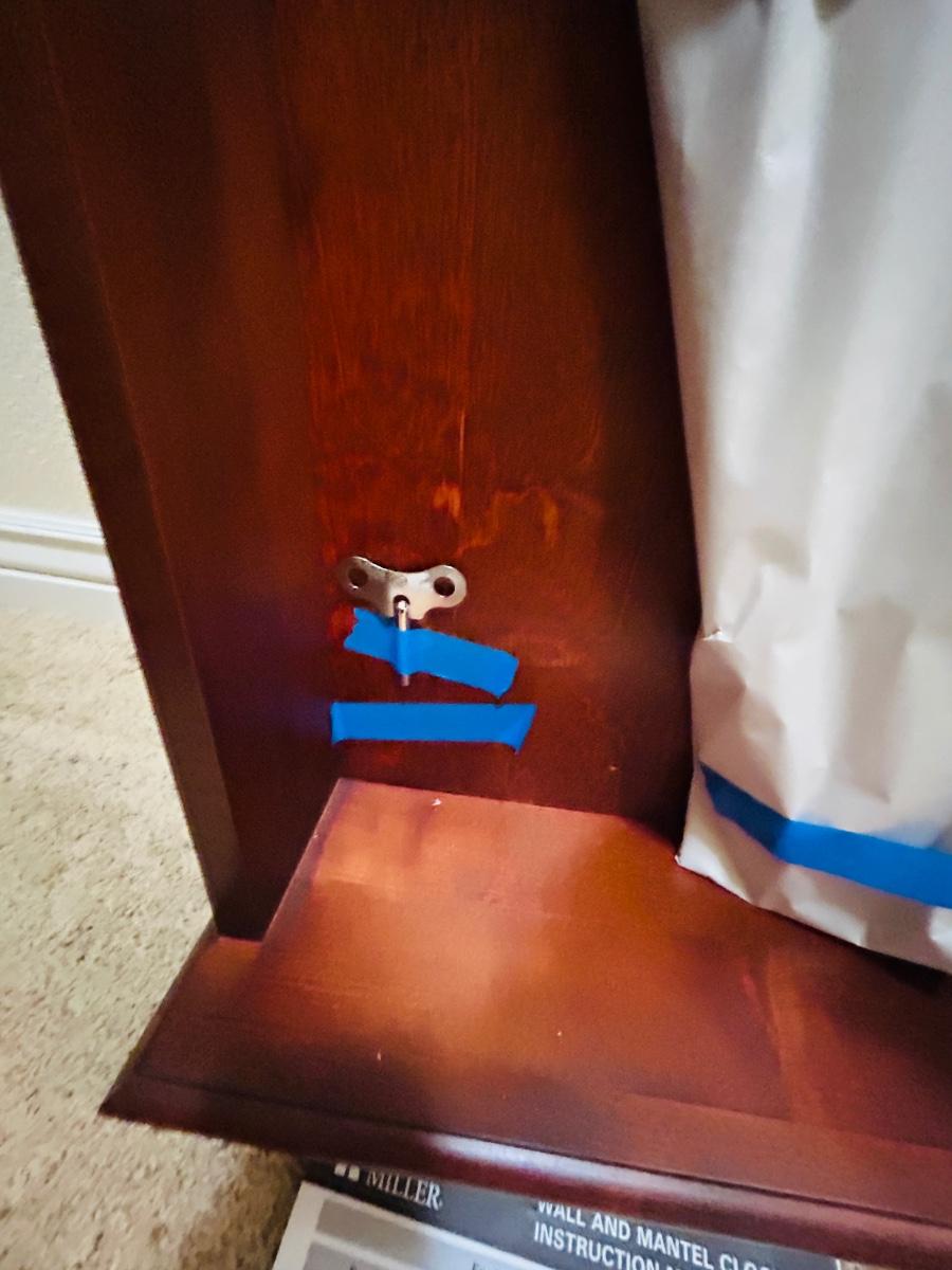Howard Miller New Haven 620-196 Keywound Wall Clock is lightly distressed in a rich Cherry finish on cherry wood. Accenting the pediment and base are four carved overlays and a dentil molding above the dial. The unique dial features a soft, aged design with an antiqued, brushed brass-finished bezel. Fluted columns frame the beveled glass front-opening door with an antiqued, brushed brass pendulum highlighted inside. Finished in New Haven on select hardwoods and veneers. Precision German-made Key-wound Westminster chime movement requires winding only once per week. The chime on/off lever is located on the dial. Key-wound, quarter-hour Westminster chime movement with an hour count. Chime silence lever and durable bushings.
