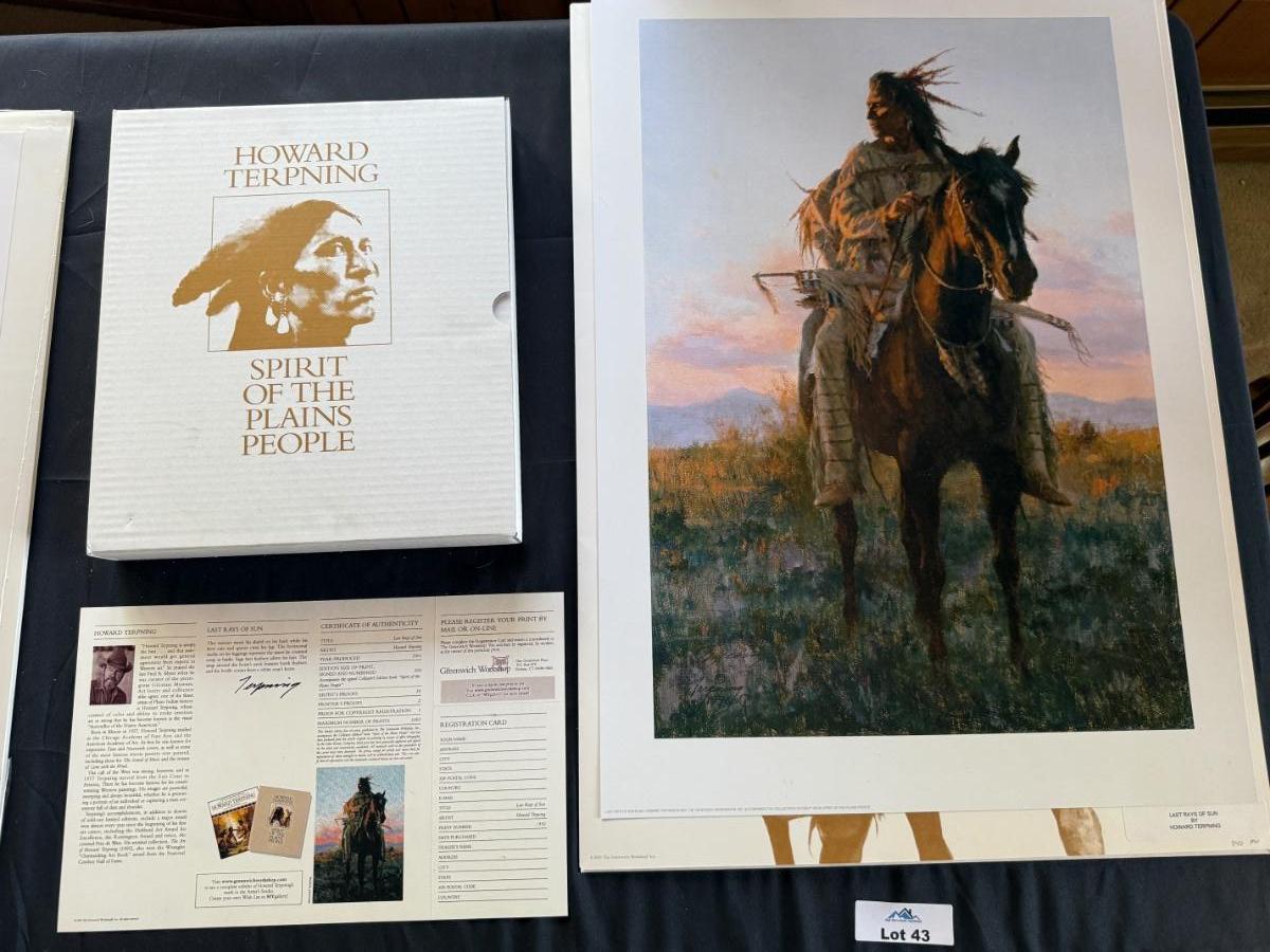 Unframed Howard Terpning "Last Ray of Sun" numbered #840/950 print signed with book