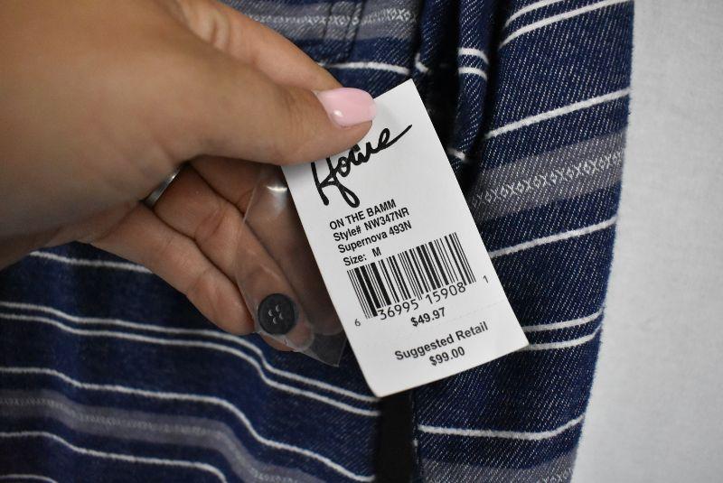HOWE Mens Creative Workforce Blue Gray White Striped Button Front Shirt sz Med - New