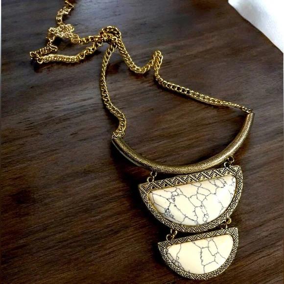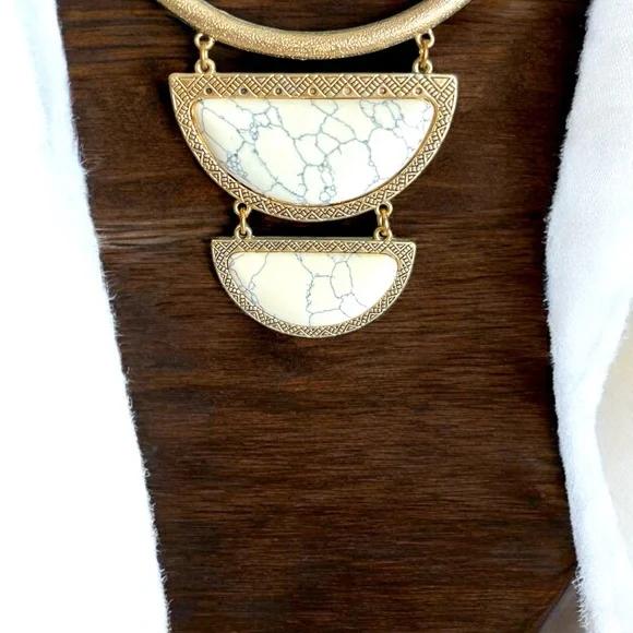 White howlite cabochon bib necklace, in great pre-owned condition.