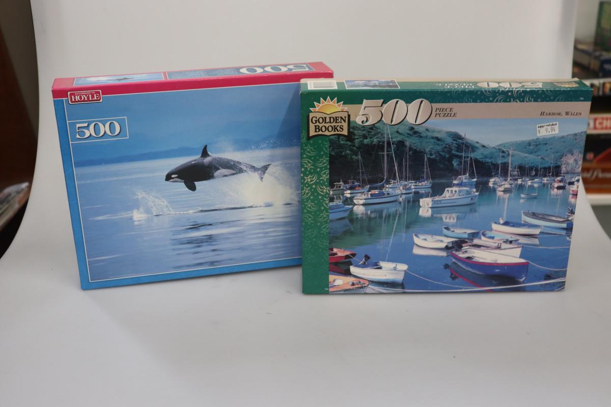 Hoyle 500 Whale puzzle and Golden books500 piece puzzle