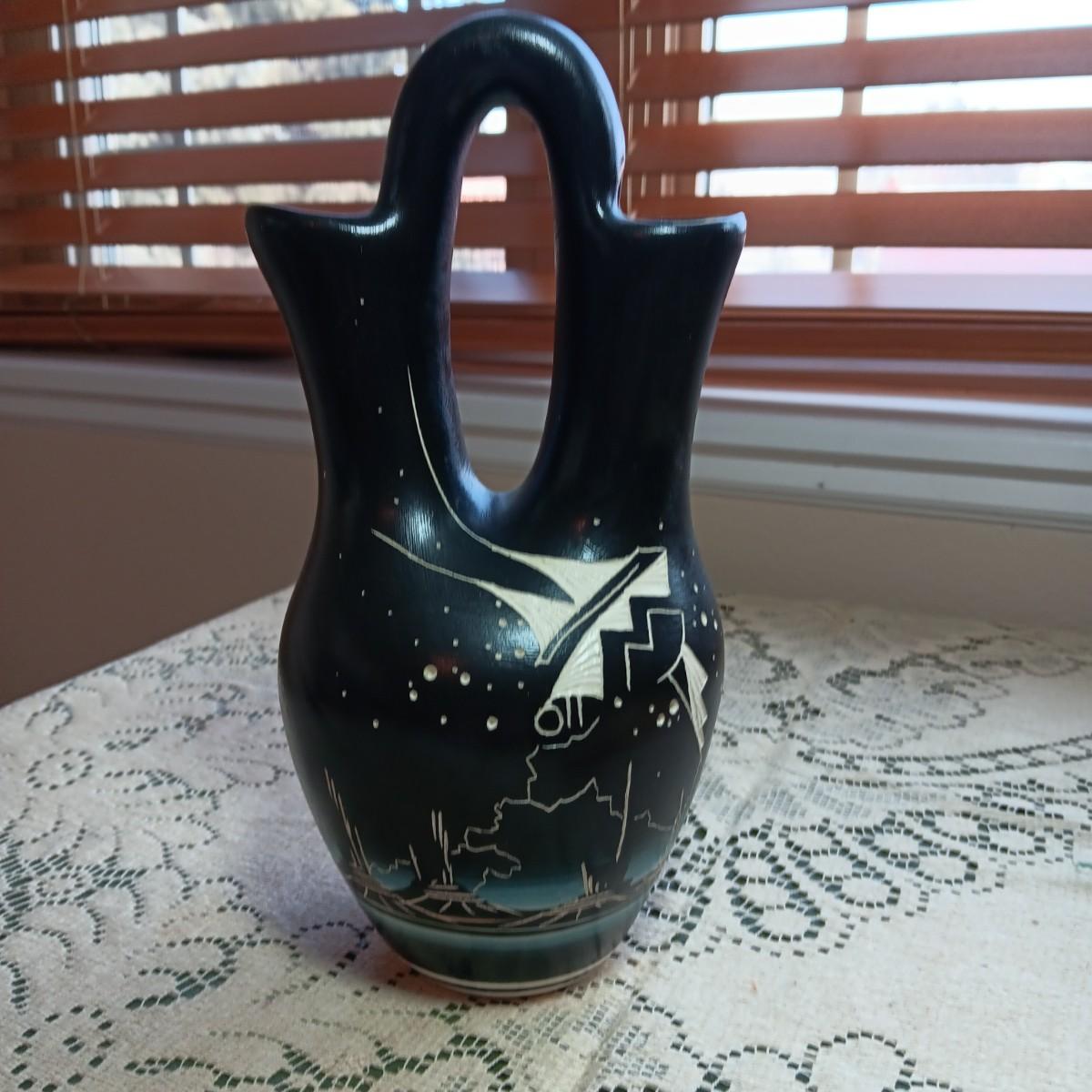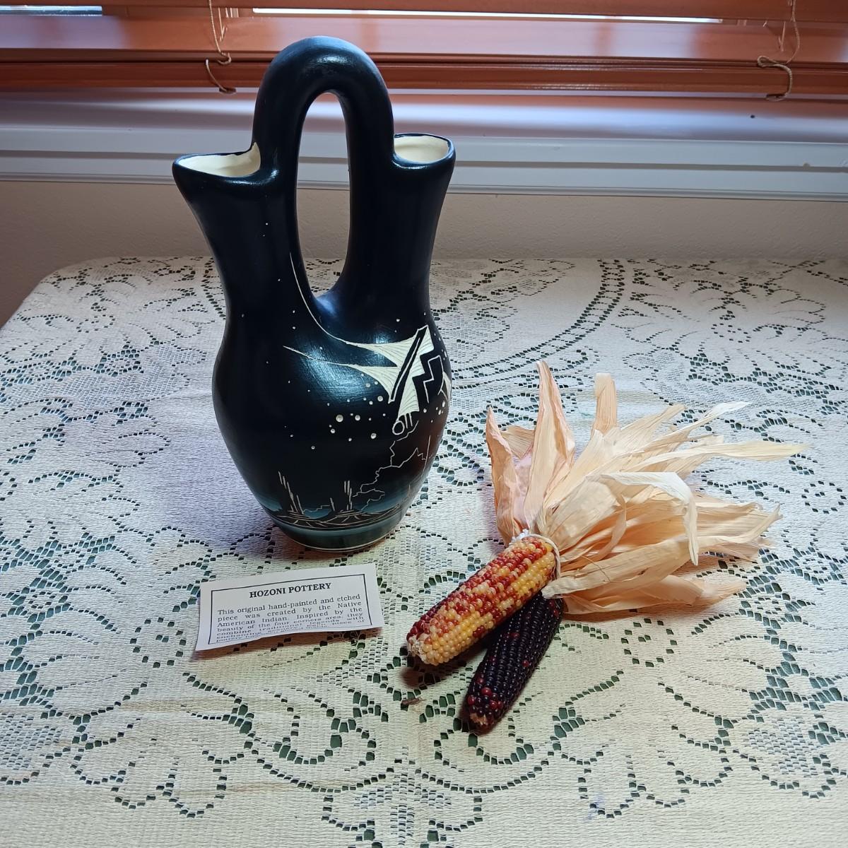 HOZONI POTTERY WEDDING VASE PAINTED BY NATIVE AMERICAN ARTISTS
