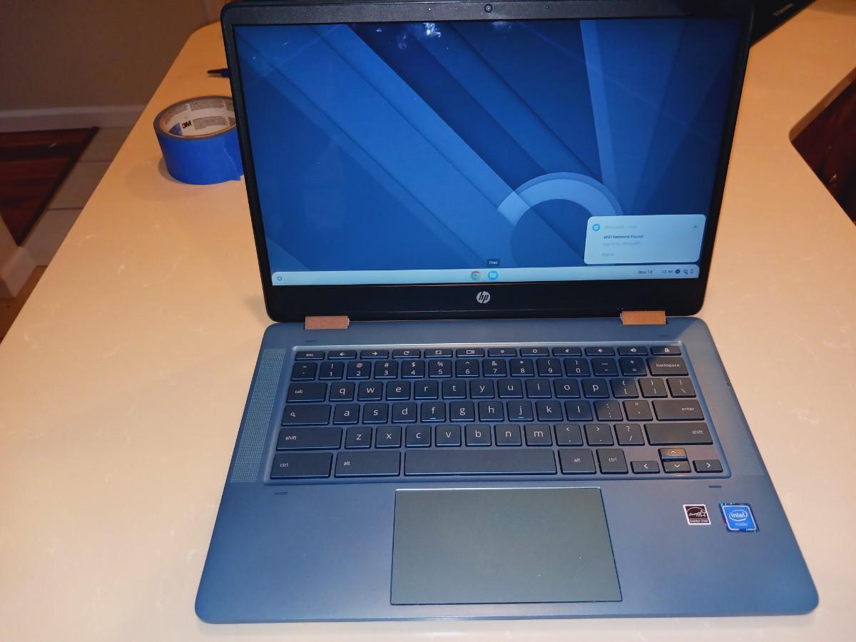 THIS LAPTOP IS PASSWORD PROTECTED AND WE DON'T KNOW THE PASSWORD. ALSO, IT POWERS WITH A C CHARGER THAT IS NOT INCLUDED