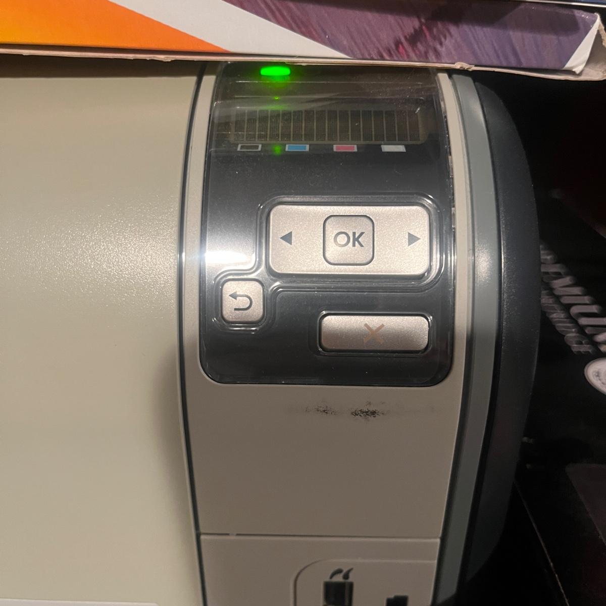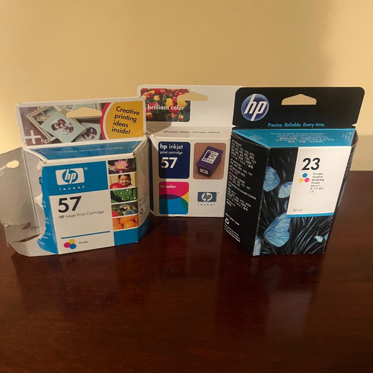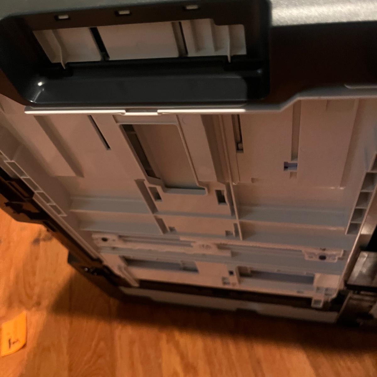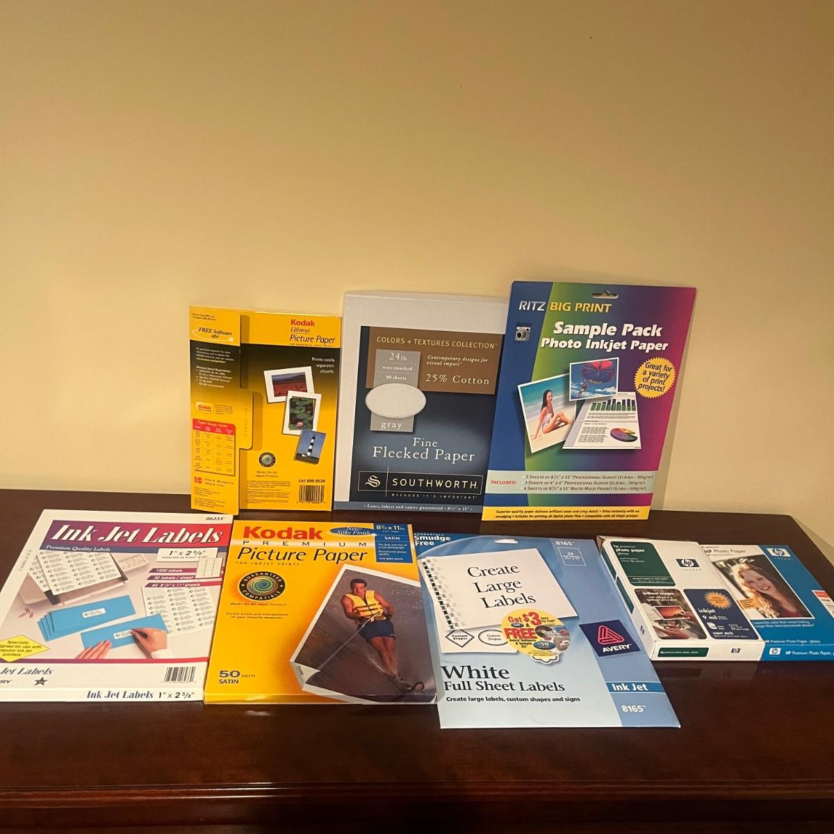 Lot includes a HP color laserjet printer, Cyberpower surge protector battery backup, assortment of paper and ink. Printer and UPS powered on when plugged in. Printer measures 15” x 18” x 10”H.