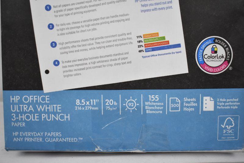 HP, HEW113102, Office Paper, 500/Ream, 3-Hole Punched, White. Open - New