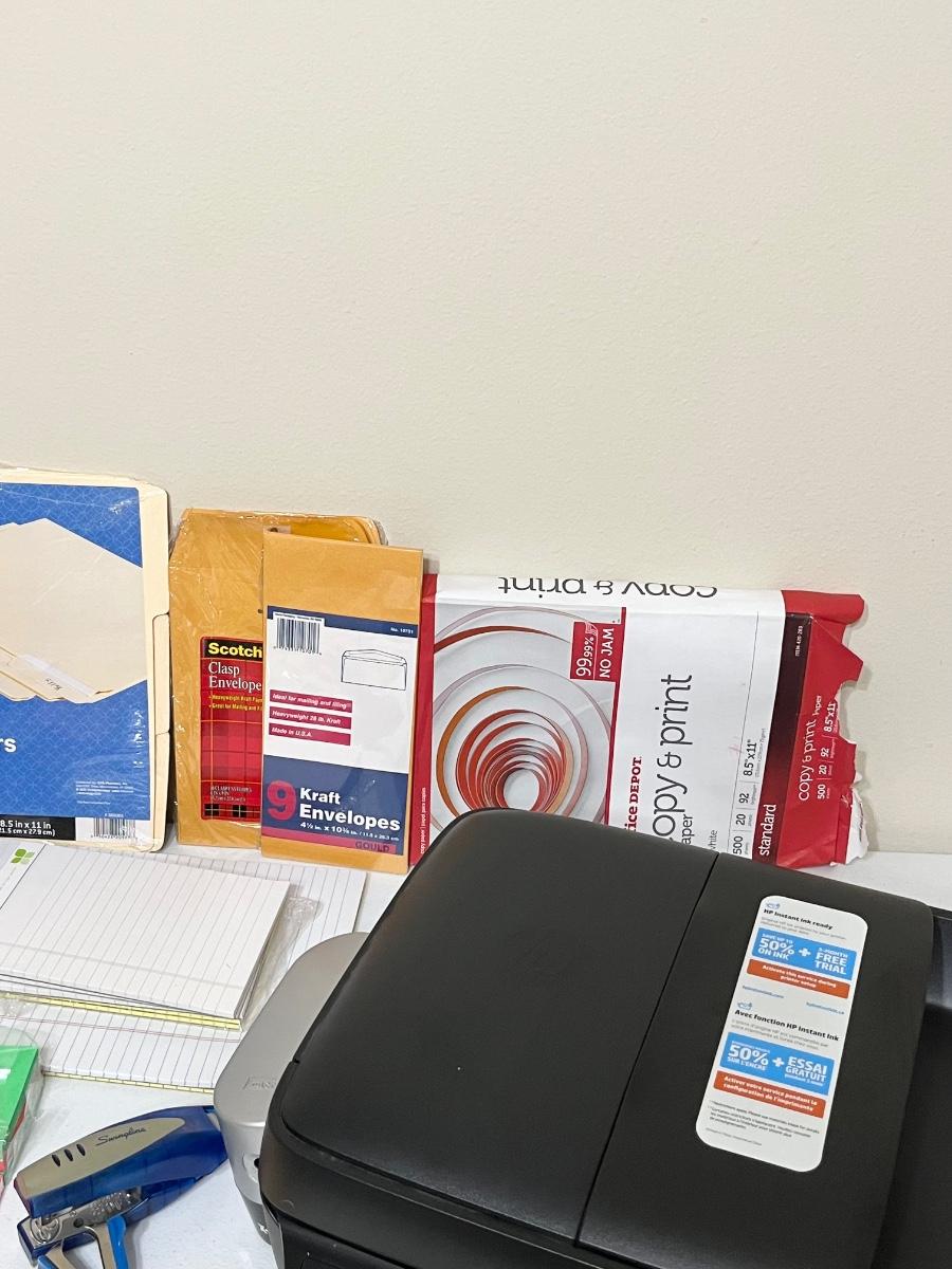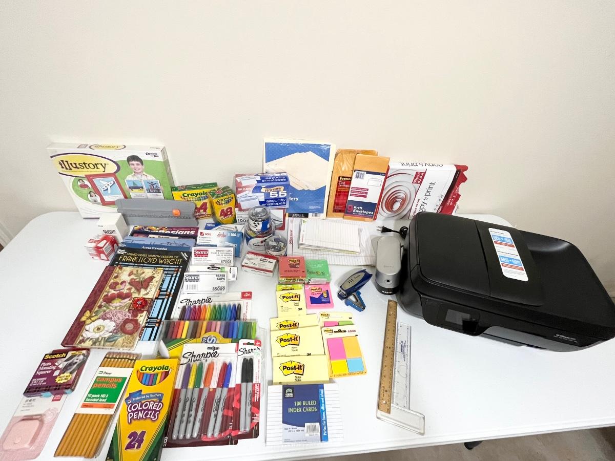 HP Office Jet Printer & A Bundle Of Miscellaneous Office Supplies