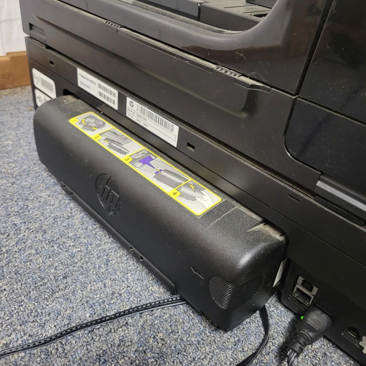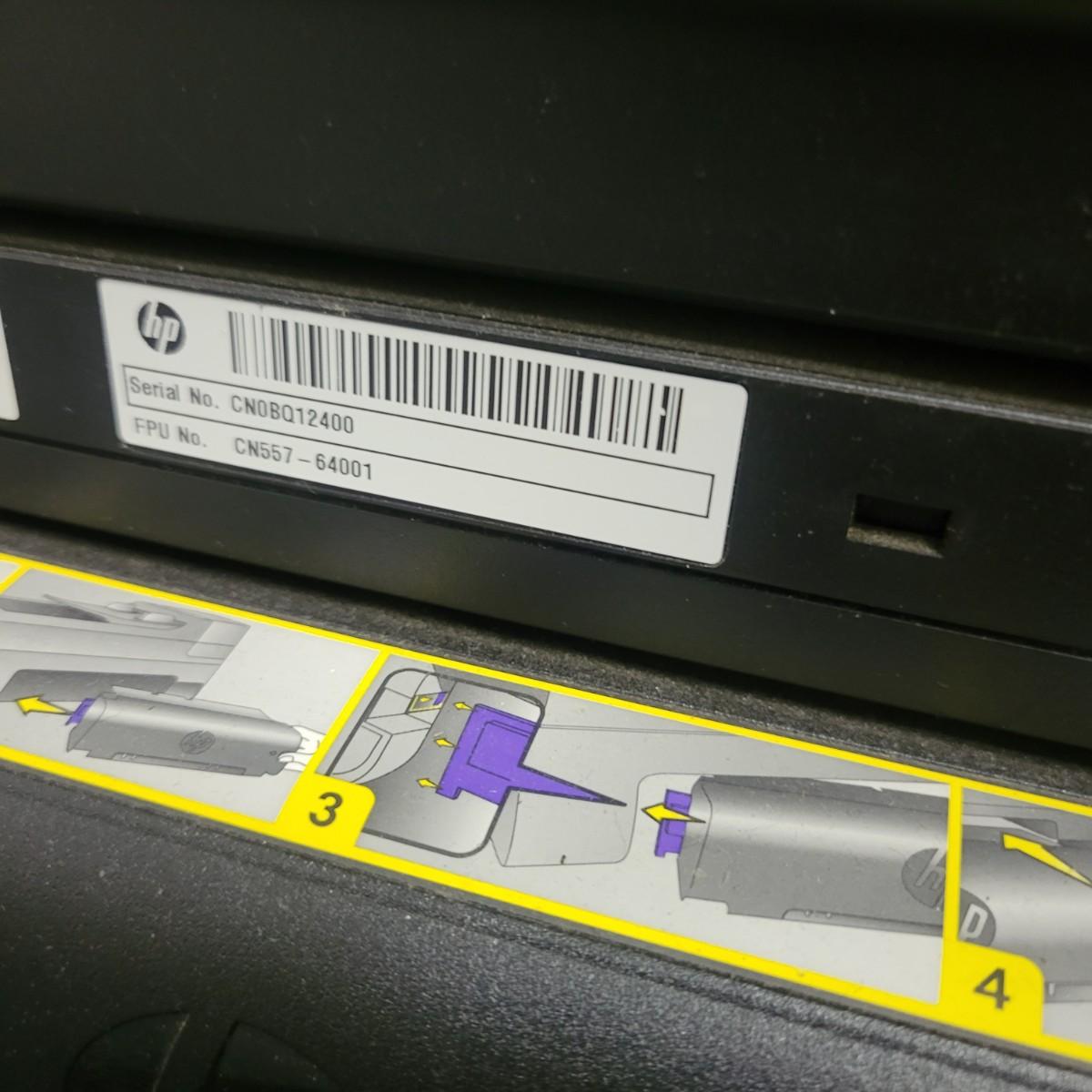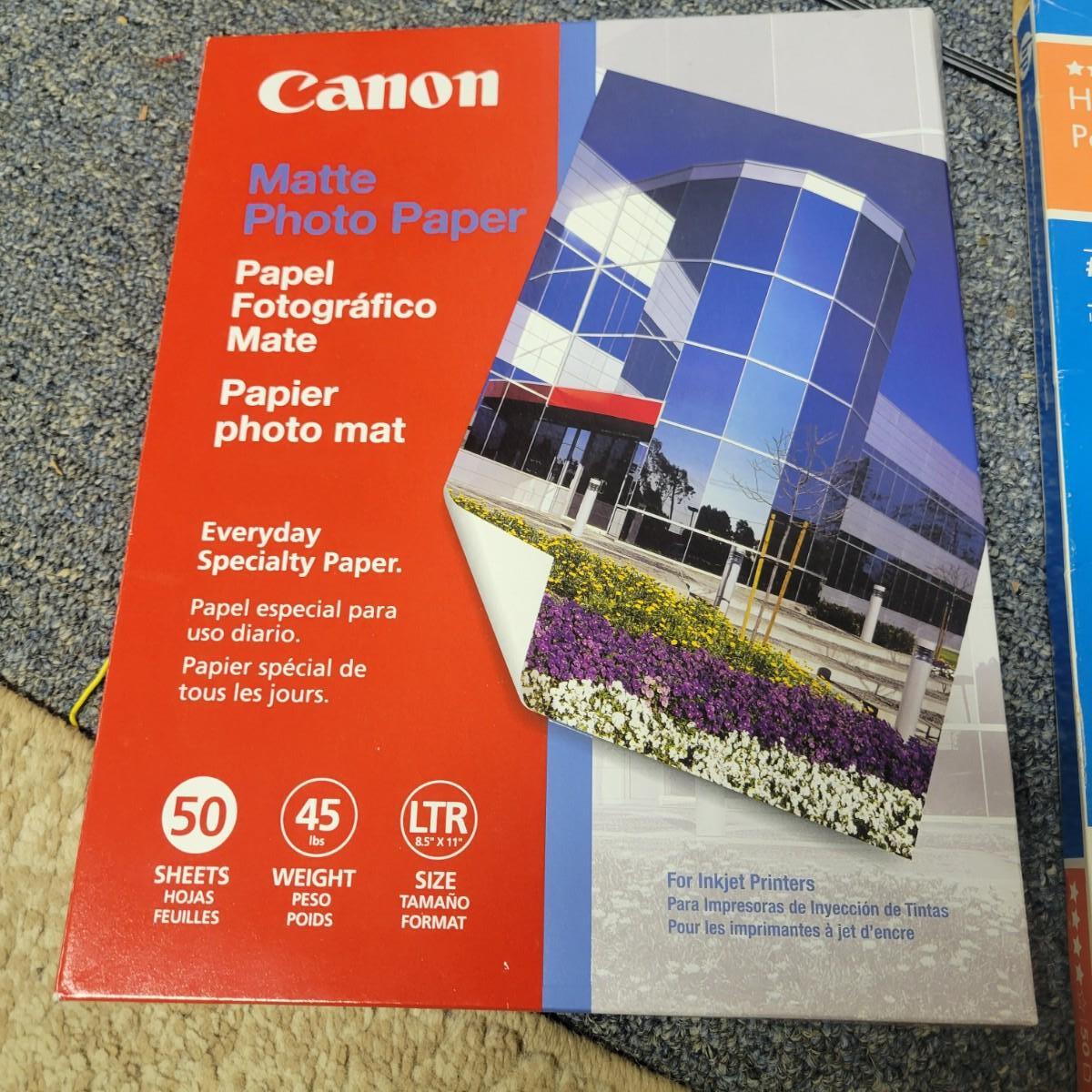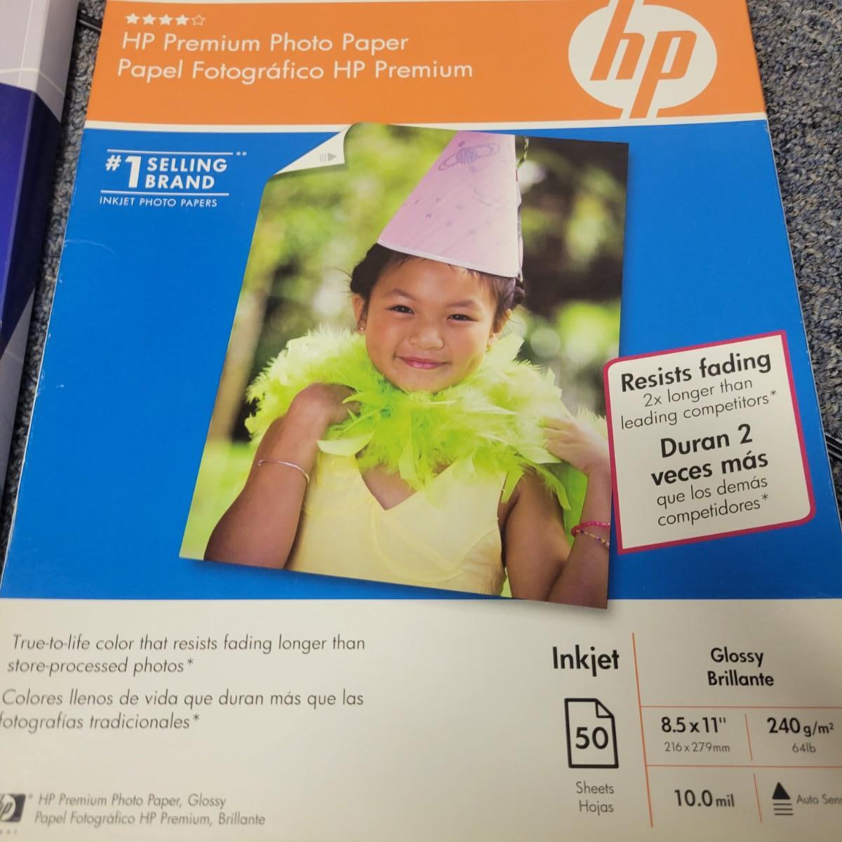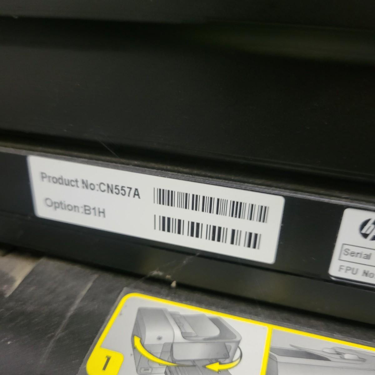 An Hewitt Packer Officejet 6500A Plus printer in good condition with no noticeable defects. Unit was powered on and works. Lot includes a USB cable and two packages of photo paper. The box of Cannon photo paper appears to be full and the HP package is about half full. Local pickup only