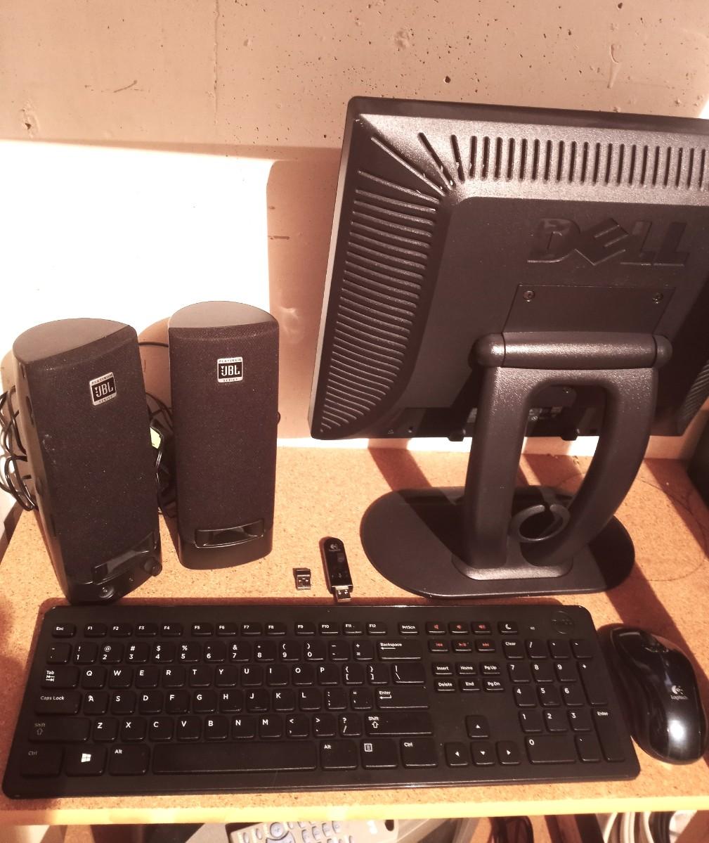 HP PAVILION P 6000 WINDOWS 7 DESK COMPUTER MODEL P6710f (UNTESTED)-DELL MONITOR MODEL E173FP-JBL DESK SPEAKERS AND KEYBOARD AND MOUSE