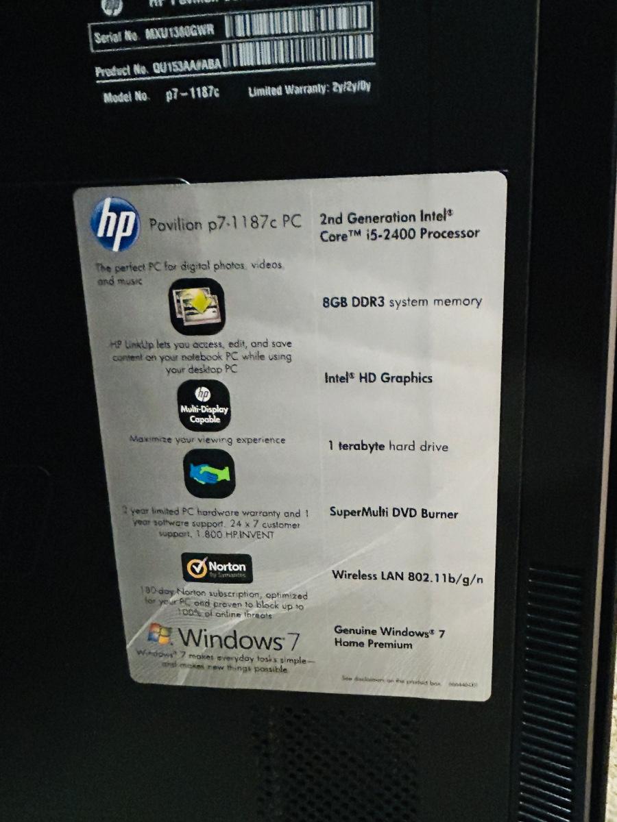 HP PAVILION SERIES 2nd GENERATION P7-1187c