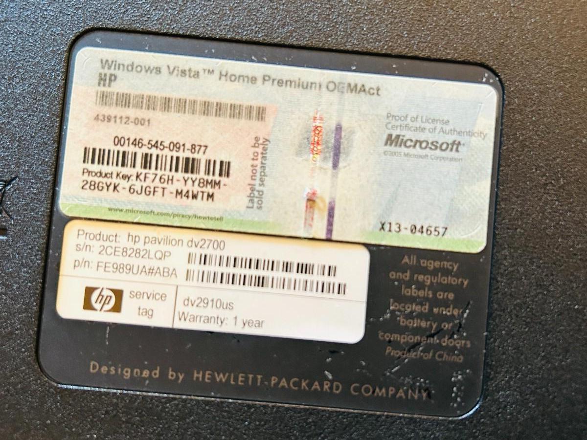 HP PAVILLION Dv2700 LAPTOP COMPUTER WITH WINDOWS VISTA HOME PREMIUM AND CARRY CASE