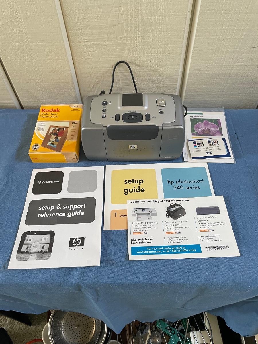 Used HP Photosmart Printer model 245. Includes many accessories. See photos for additional info on what’s included. Tested.