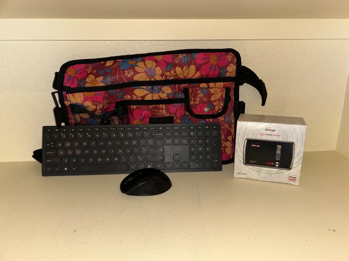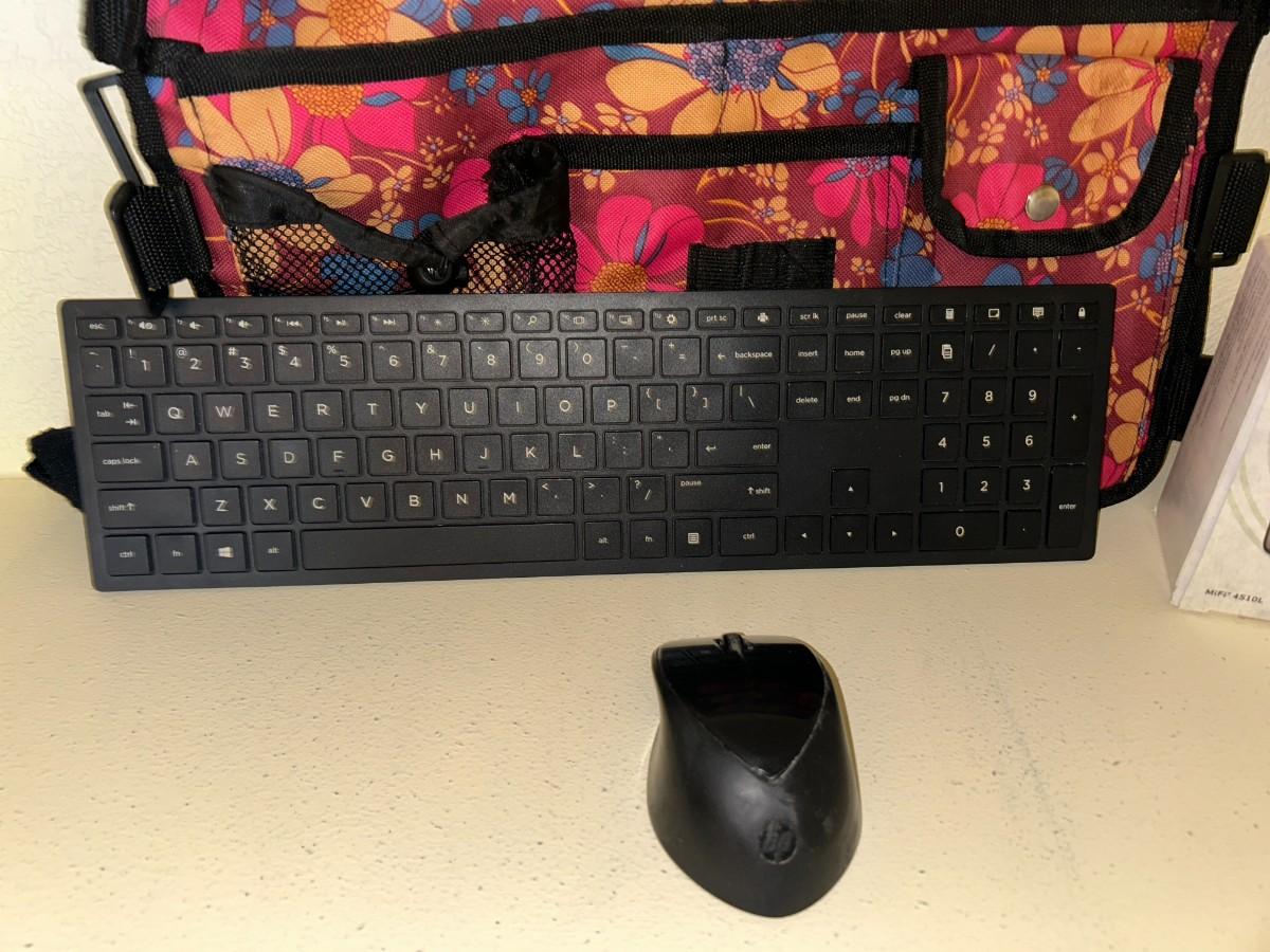 HP WIRELESS KEYBOARD AND MOUSE WITH A BAG THAT CAN ATTACH TO A MOBILITY WALKER