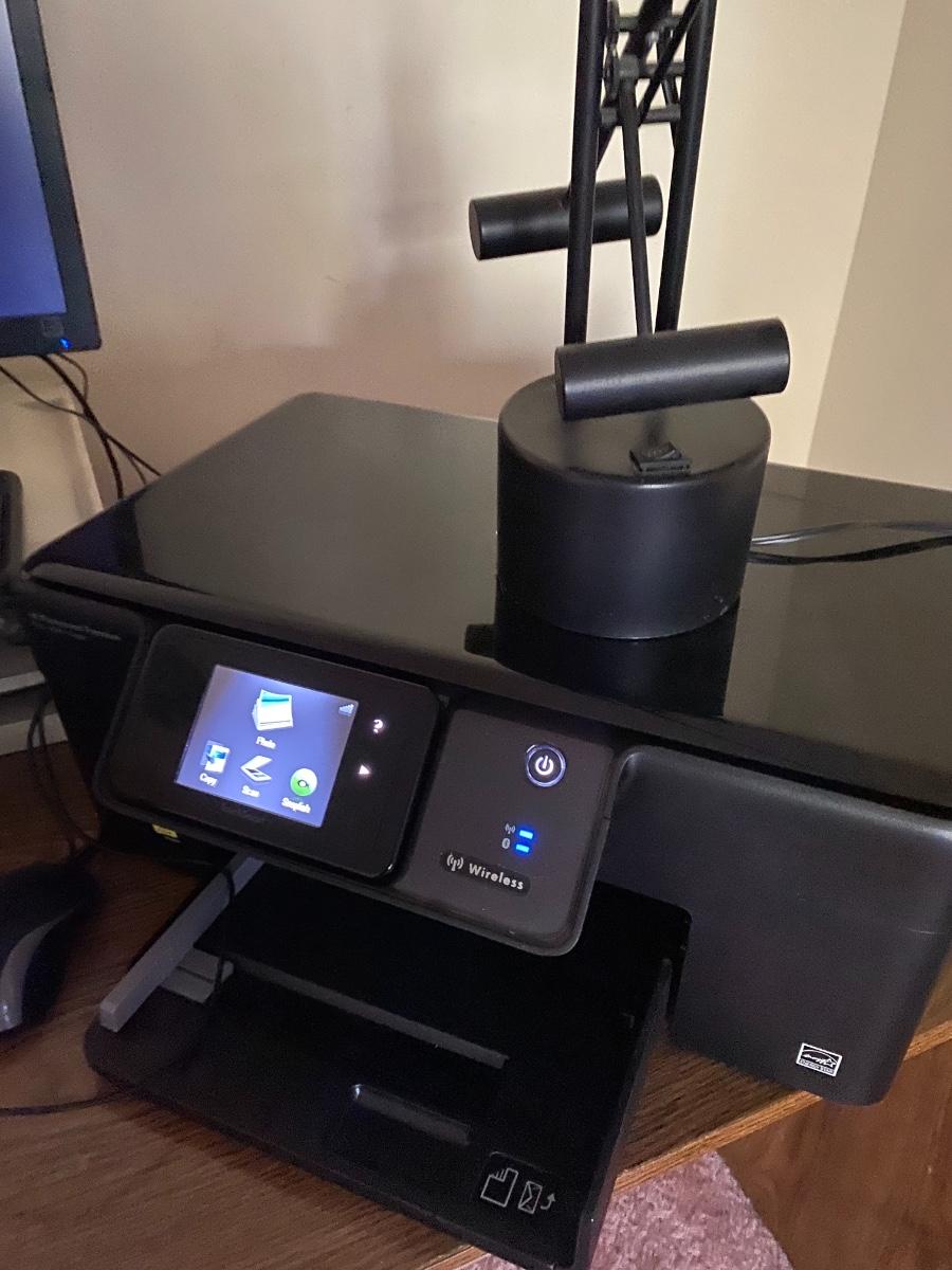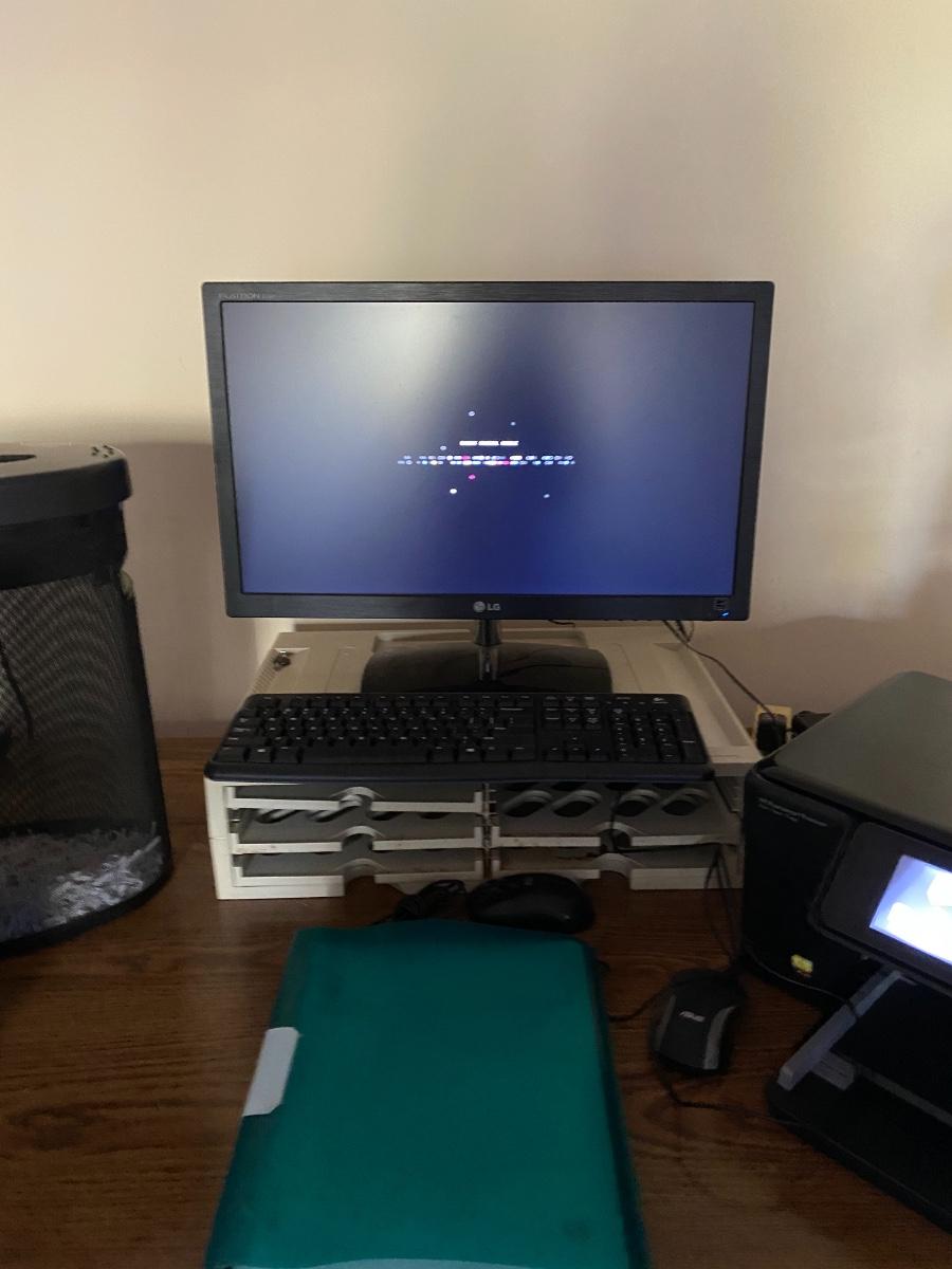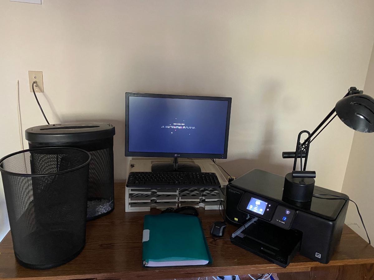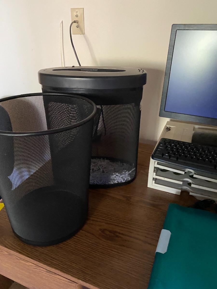 Also includes shredder, waste paper basket, and, mouse for keyboard. Working. In office.
