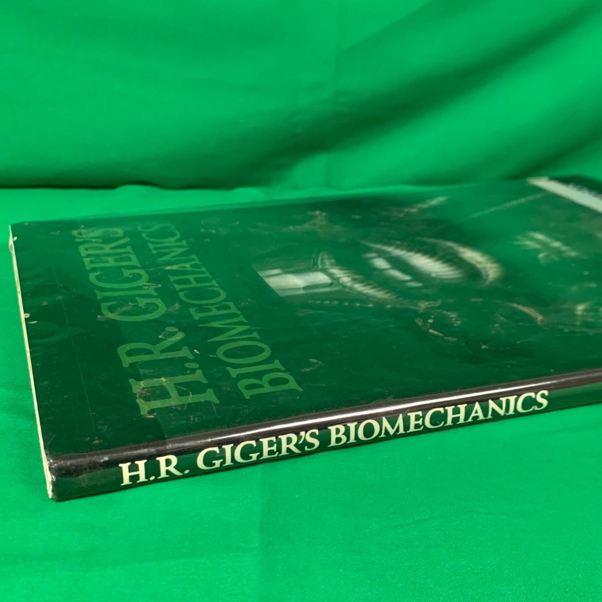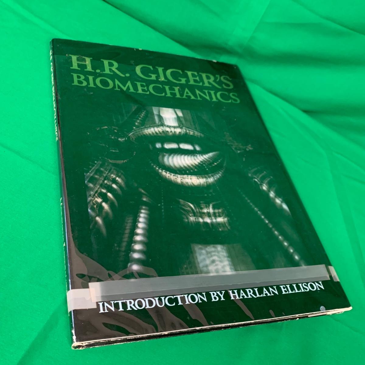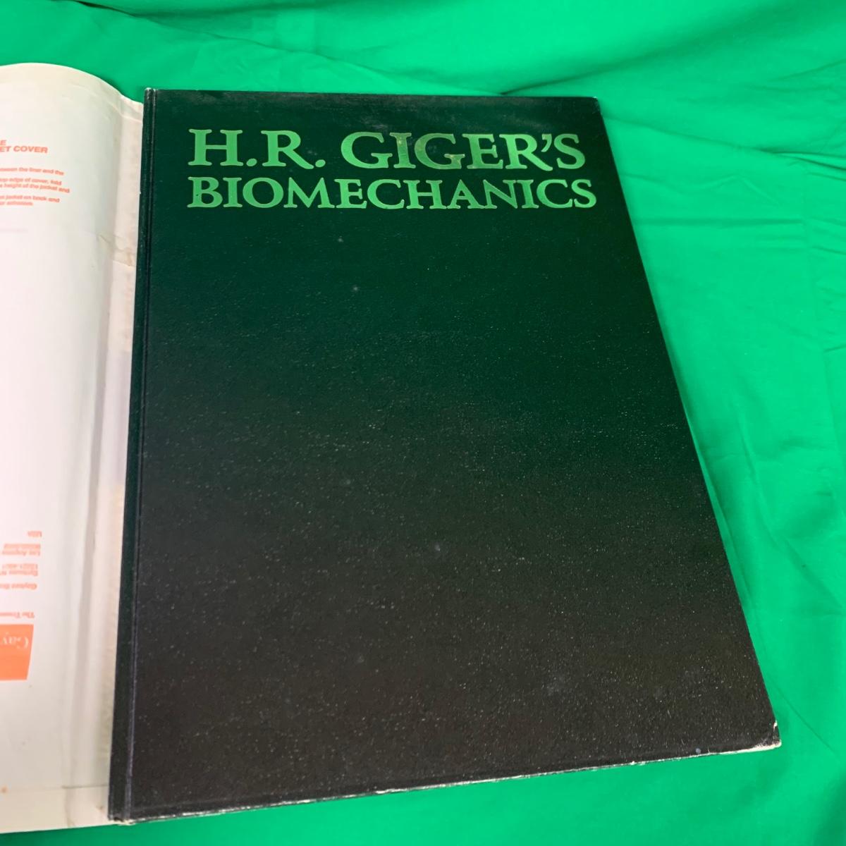 Large hardcover “Biomechanics” by H.R. Giger. Book has a dust cover. There is some tape on the dust cover and some light wear seen on the cover. Book is 12.25” x 17”H.
