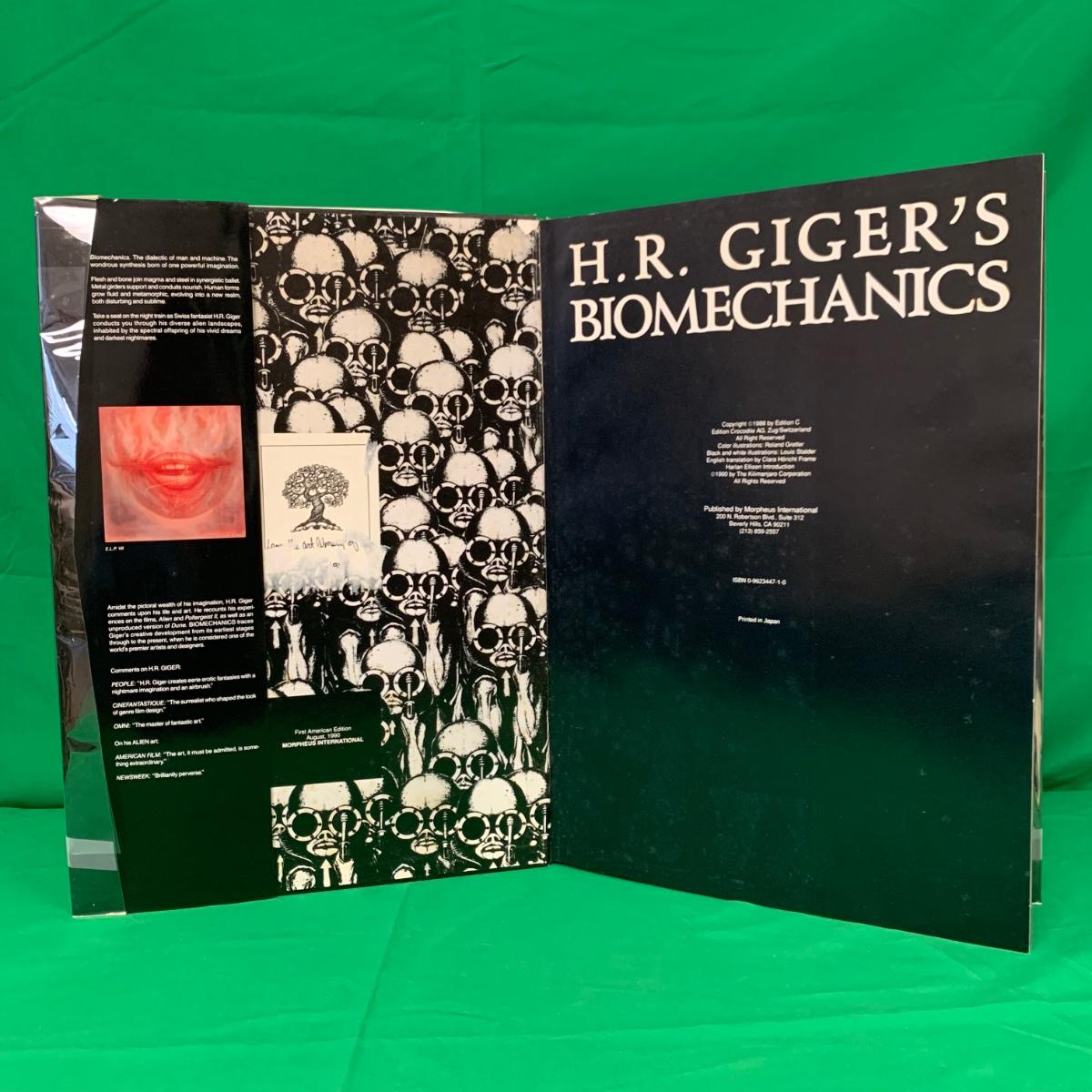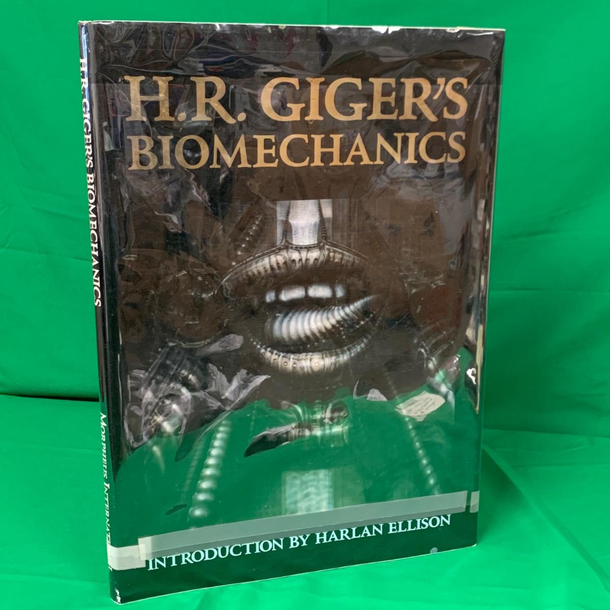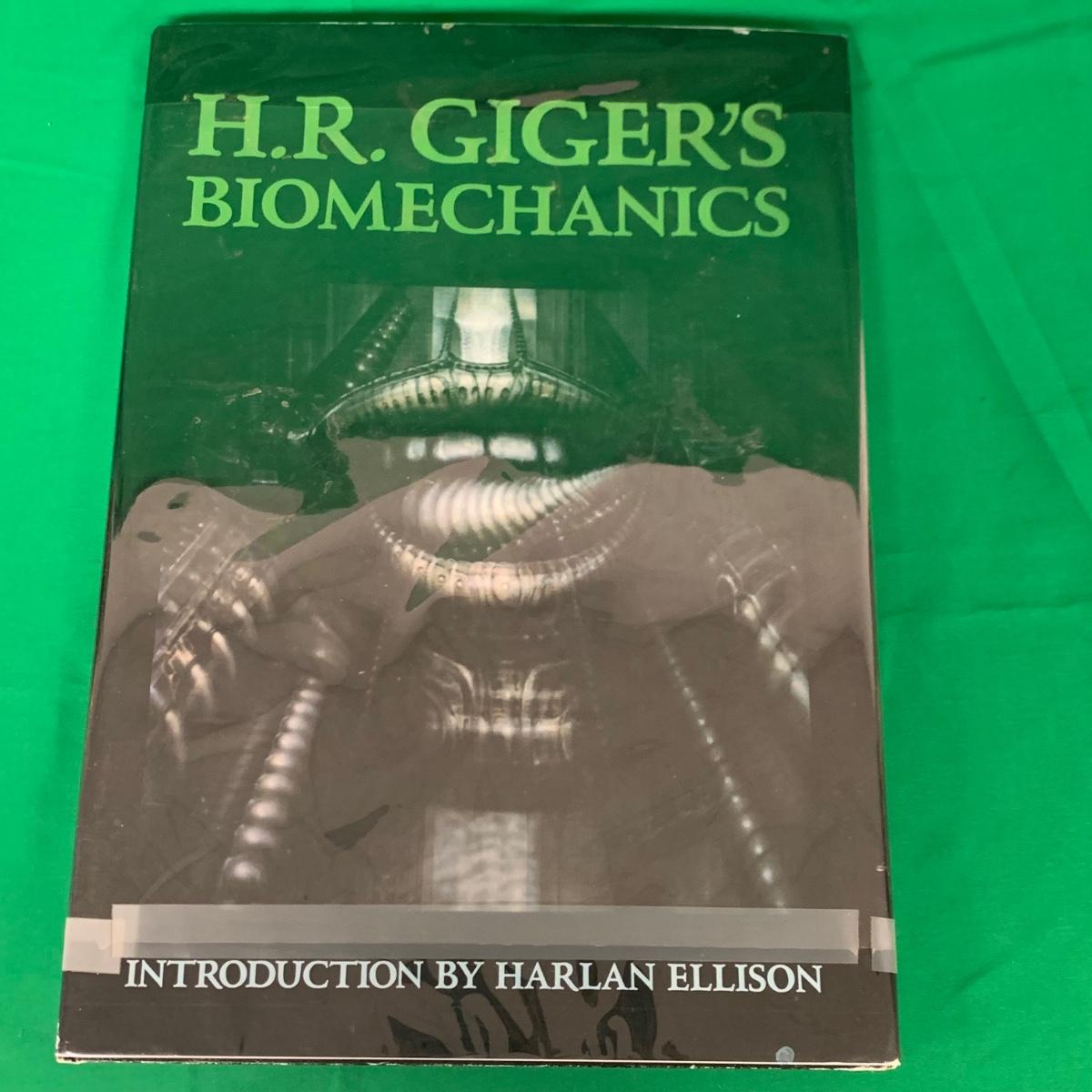 Large hardcover “Biomechanics” by H.R. Giger. Book has a dust cover. There is some tape on the dust cover and some light wear seen on the cover. Book is 12.25” x 17”H.