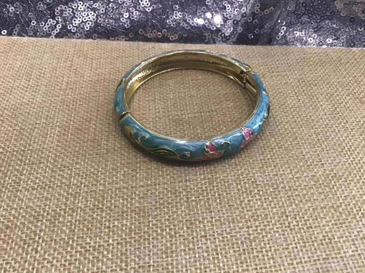 HR Helena Rubenstein Bangle Bracelet Water Lilies Gold Flowers Floral