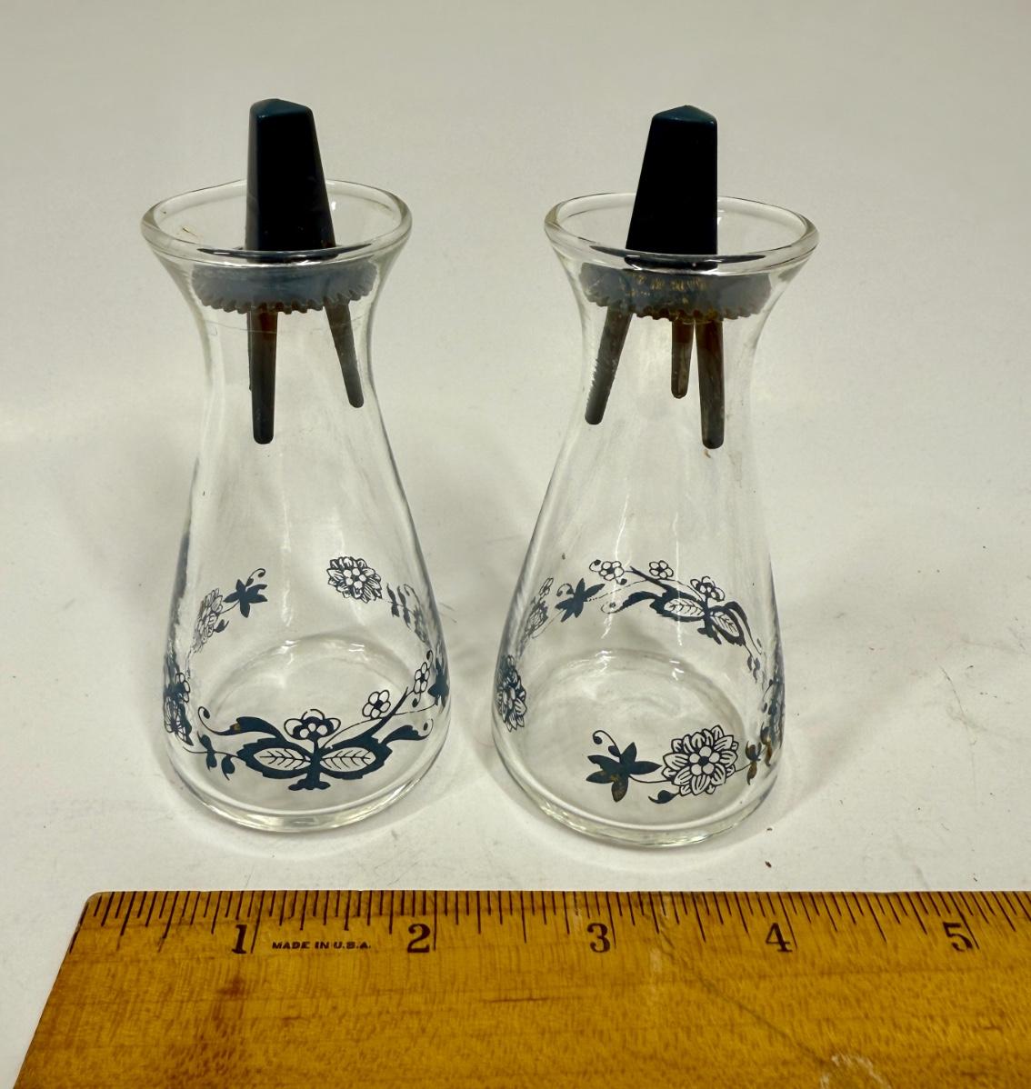 Vintage Set Of 2 - 1970’s Pyrex Old Town Blue Onion Salt & Pepper Shakers