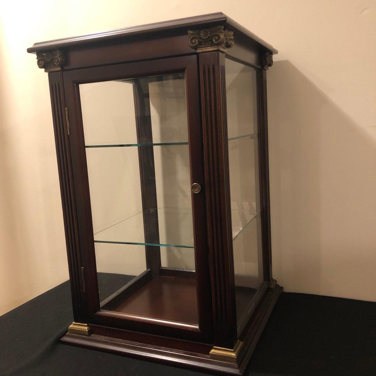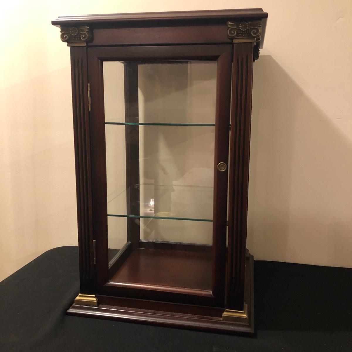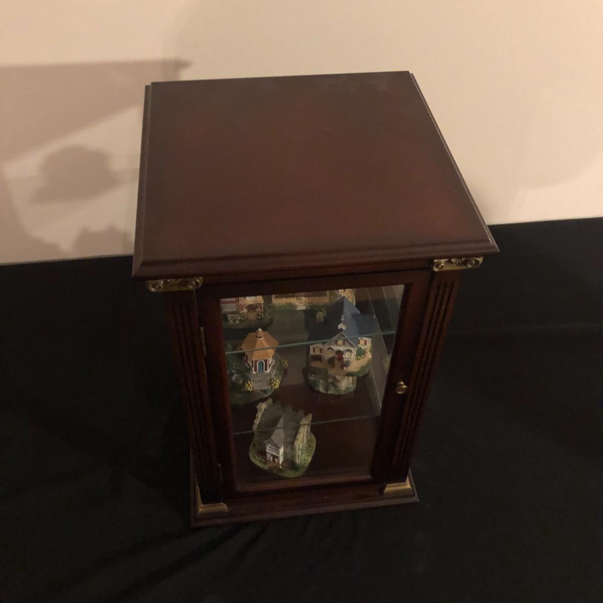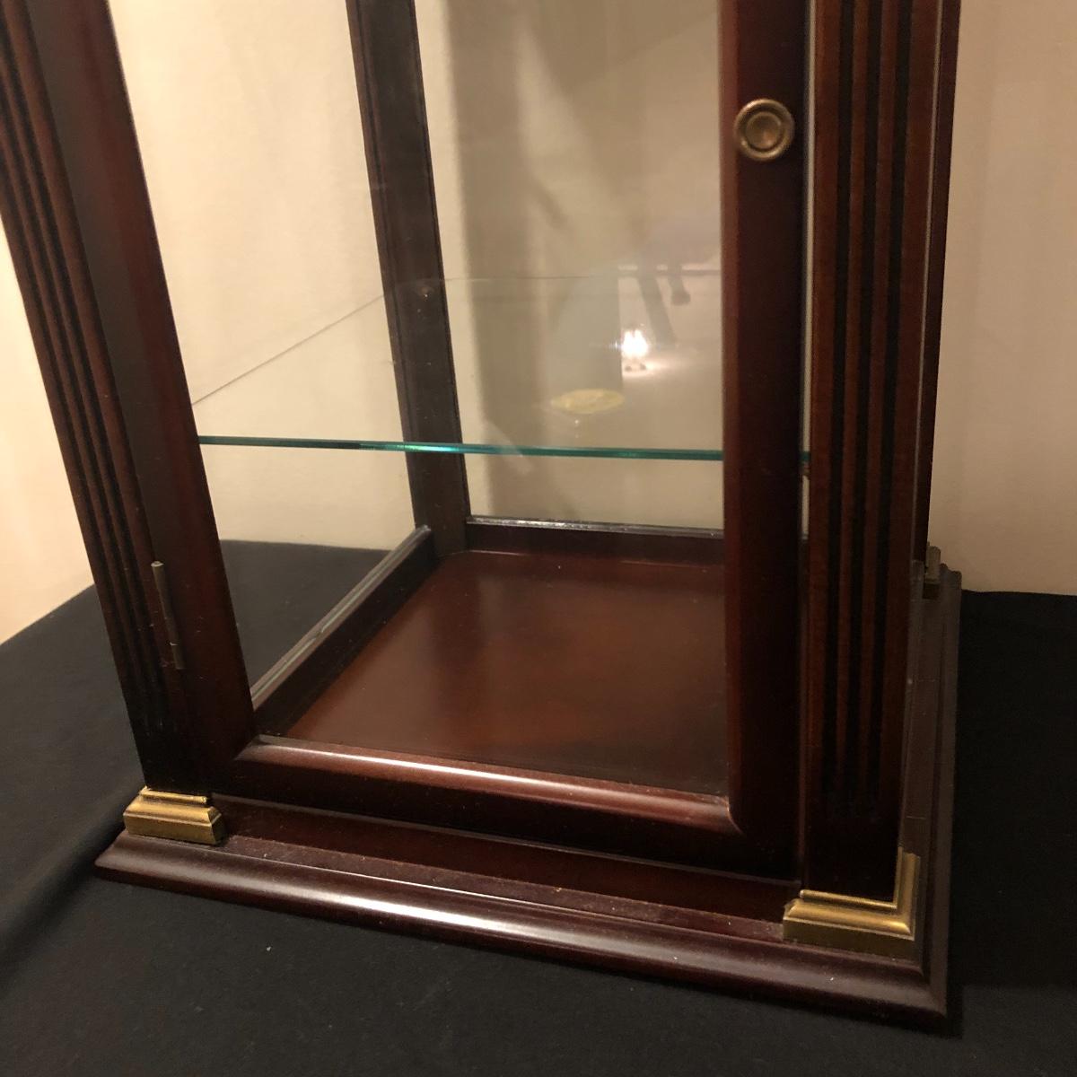 Figurines stand 2.5” - 3.5” tall and there are ten pieces. Each piece is made from International Resources, LLC and is HSE. The display case is wood and glass and framed in Roman columns. It measures 10.5” x 10.5” x 16.5”. Shipping Available.