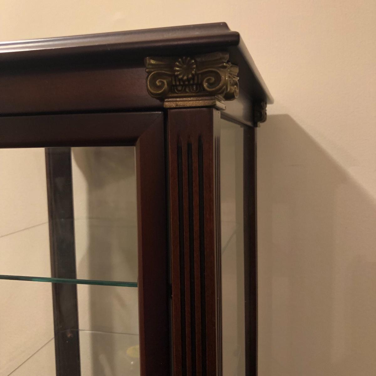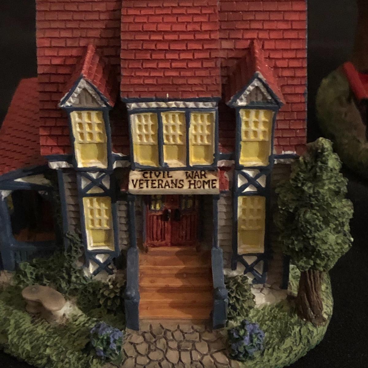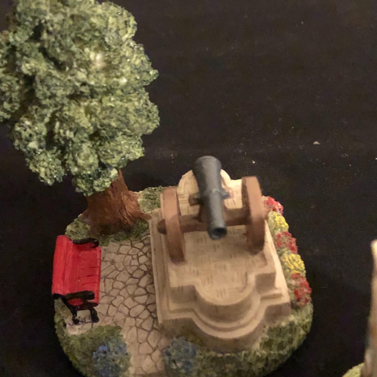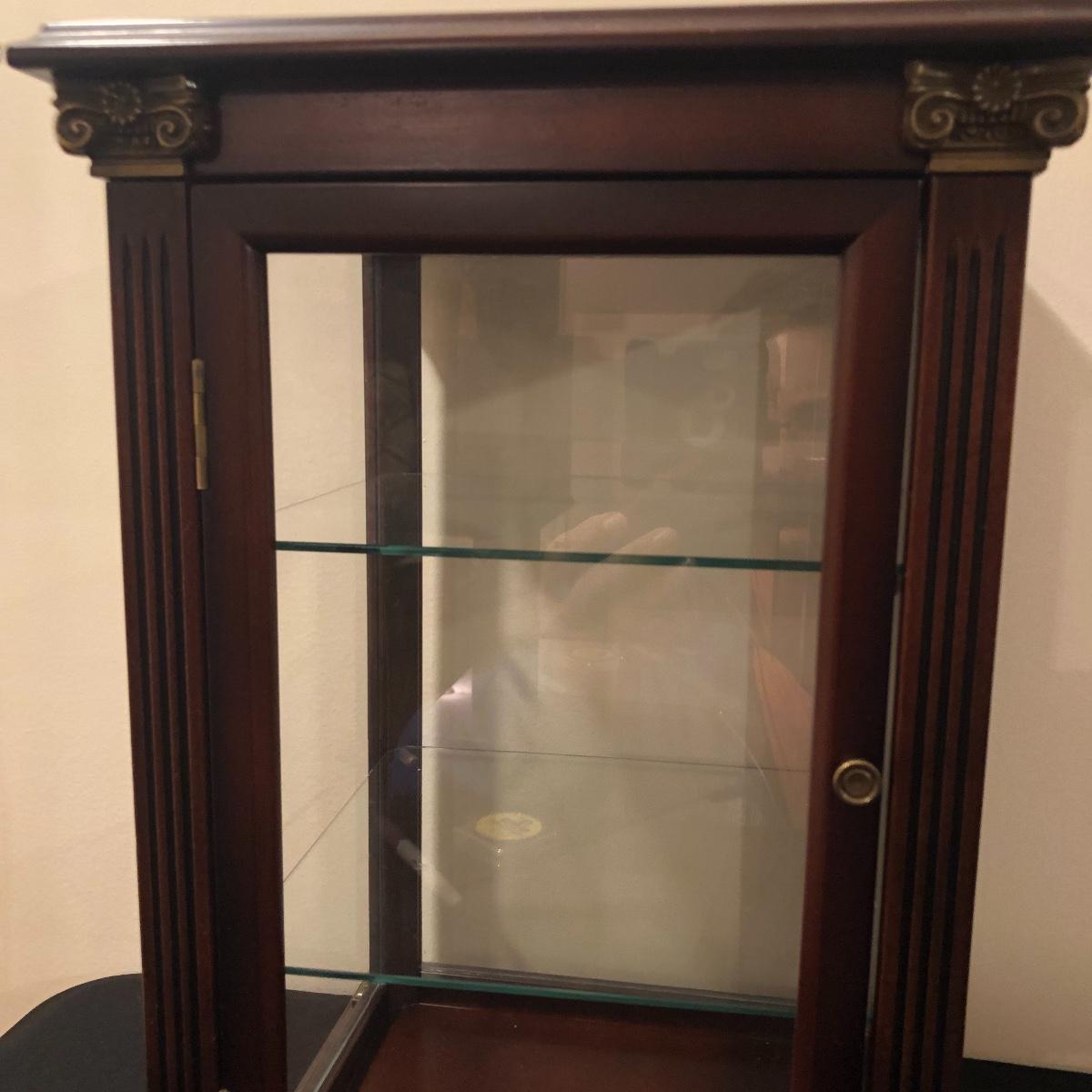 Figurines stand 2.5” - 3.5” tall and there are ten pieces. Each piece is made from International Resources, LLC and is HSE. The display case is wood and glass and framed in Roman columns. It measures 10.5” x 10.5” x 16.5”. Shipping Available.