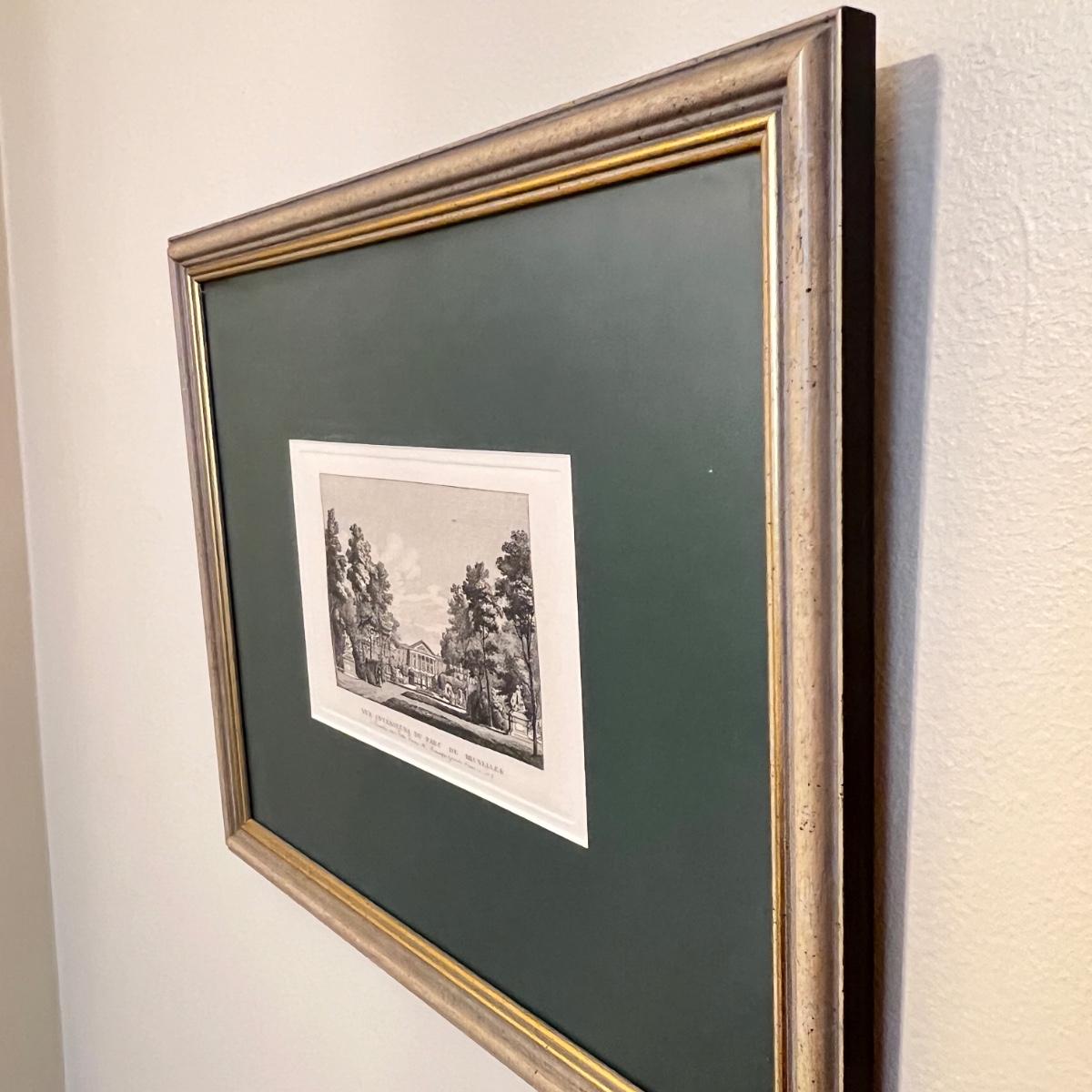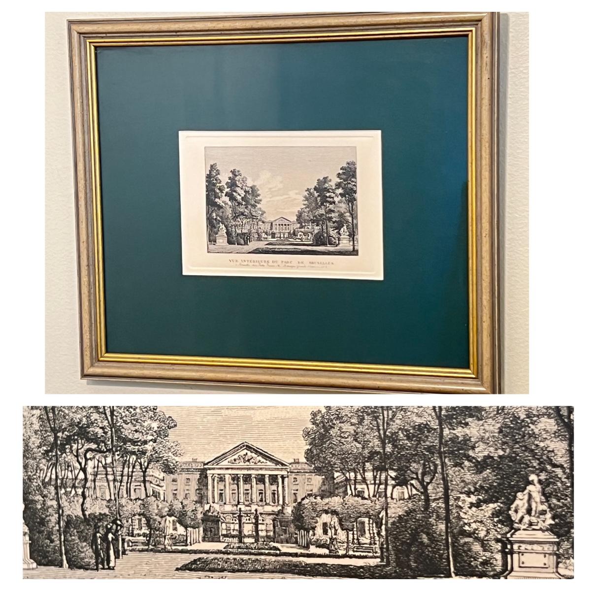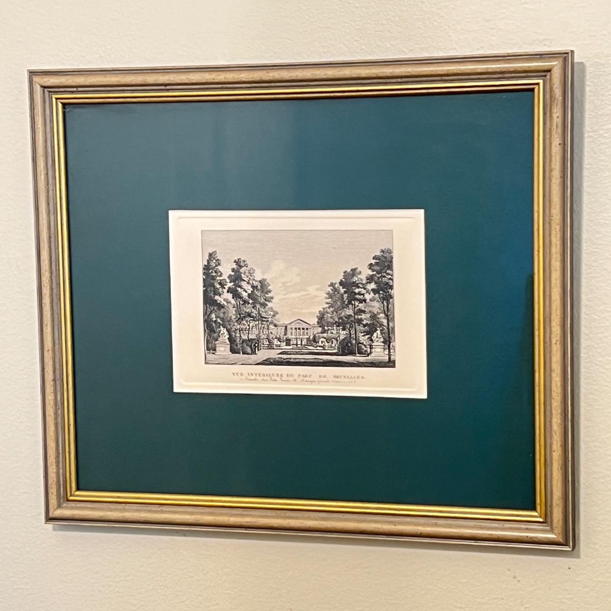 Vintage Professionally Framed Matted Engraving "Interior view of the Brussels Park"