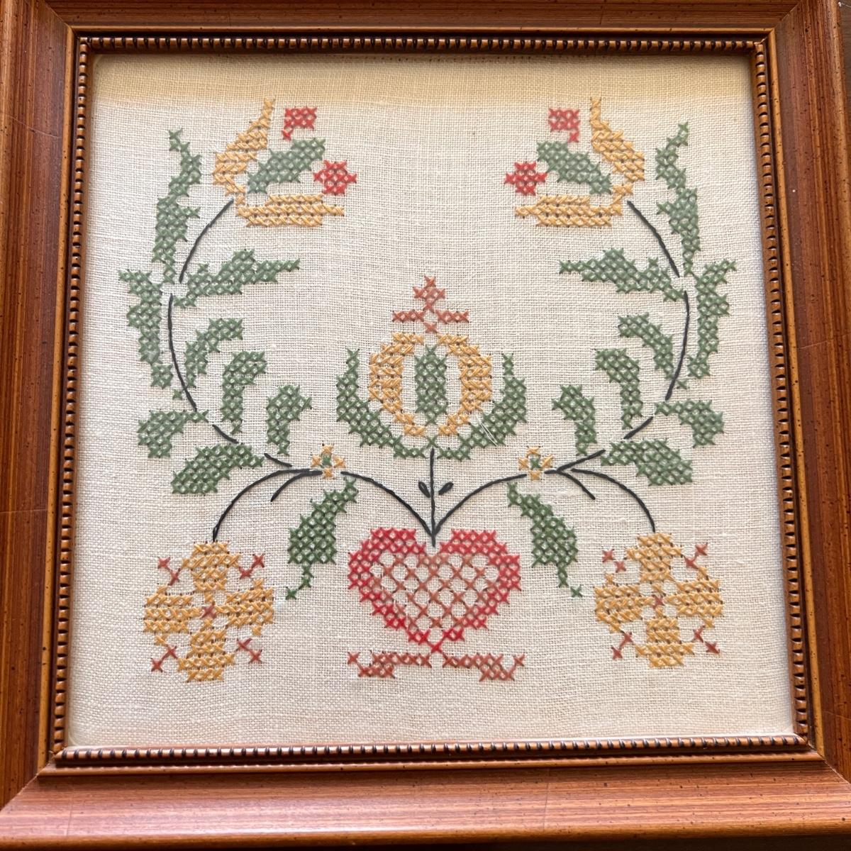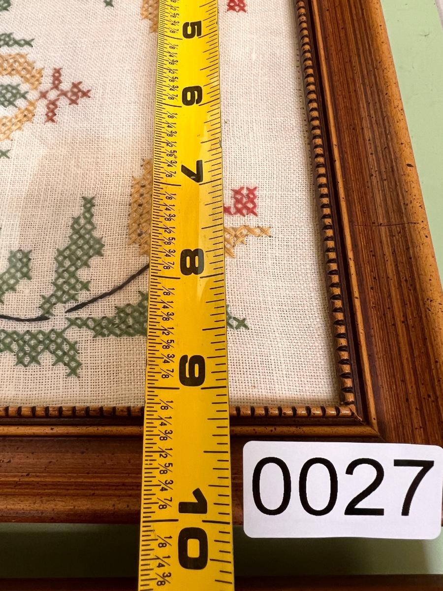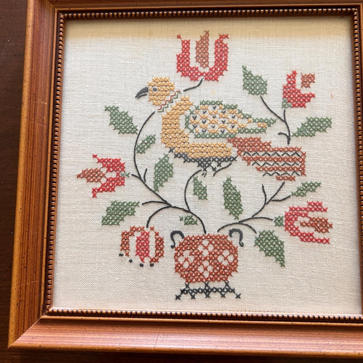 Lot of 2 professionally wooden framed embroidered hand stitched folk art pieces.
