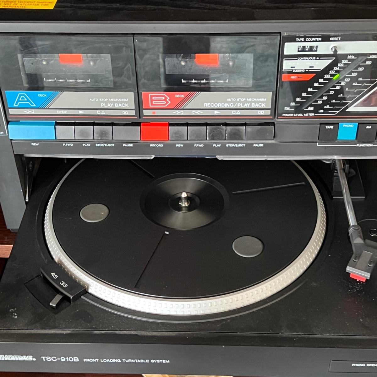 Thomas TSC-910B Turntable System w Dual Cassette Players & 2 Speakers