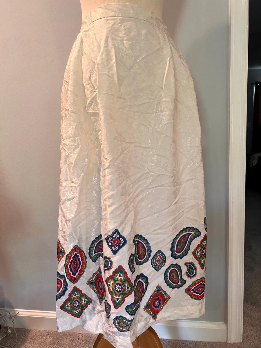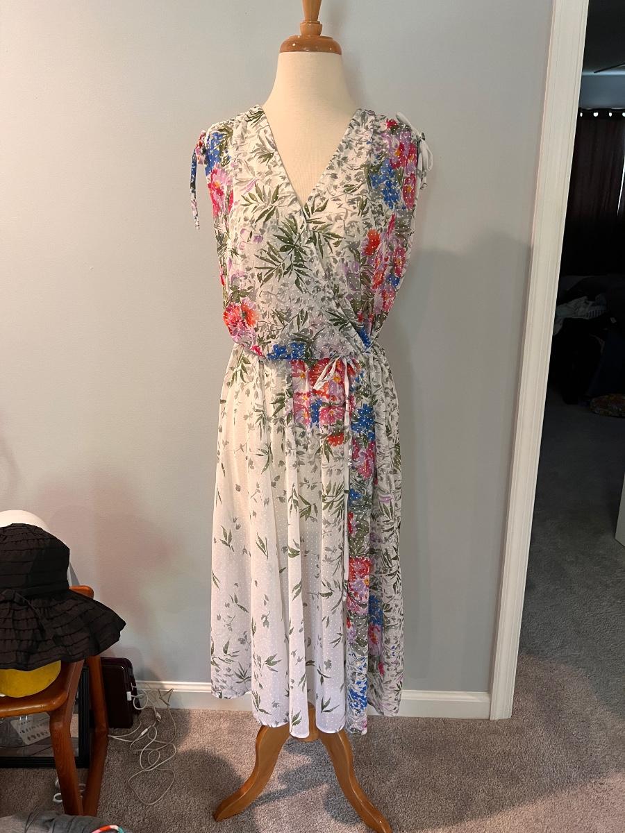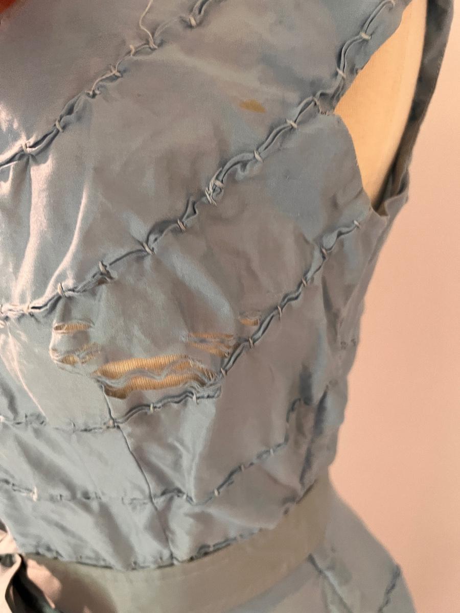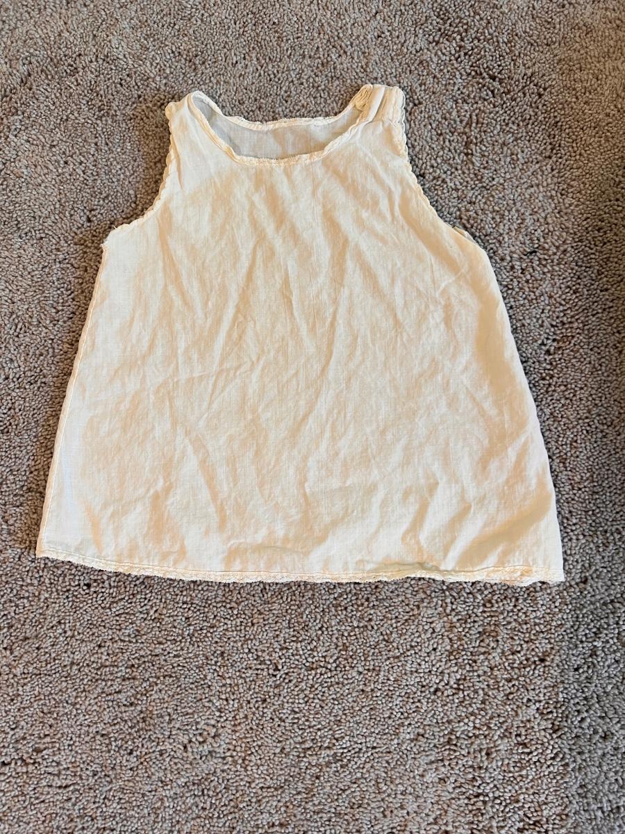 Lot of vintage clothes. 2 baby toddler outfits, 3 pairs men’s pants. 1 slip (lace has pulls), 50’s 60’s gown (fabric damage and some small stains as shown in pics). Anthony Sicari top and skirt set. Various sizes.