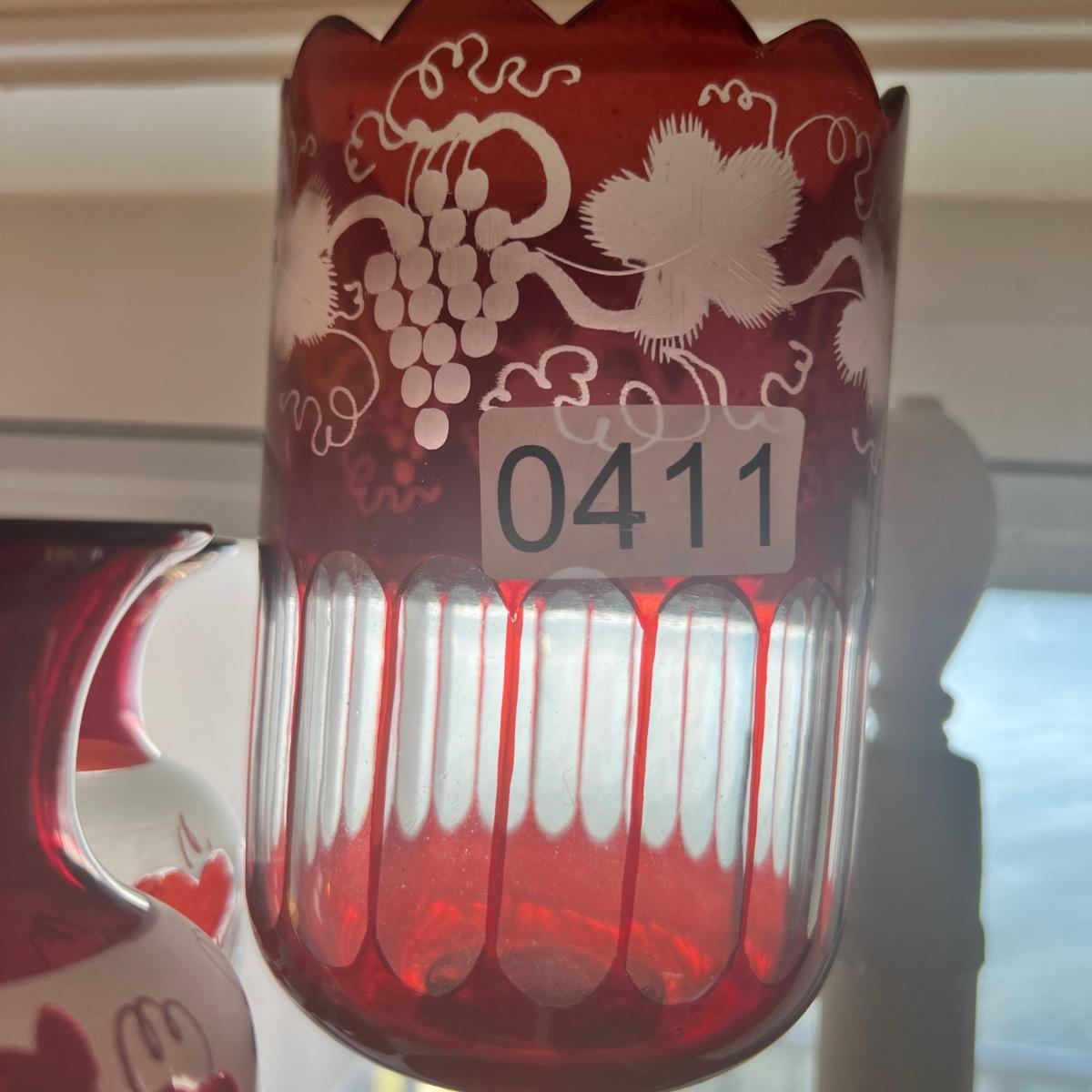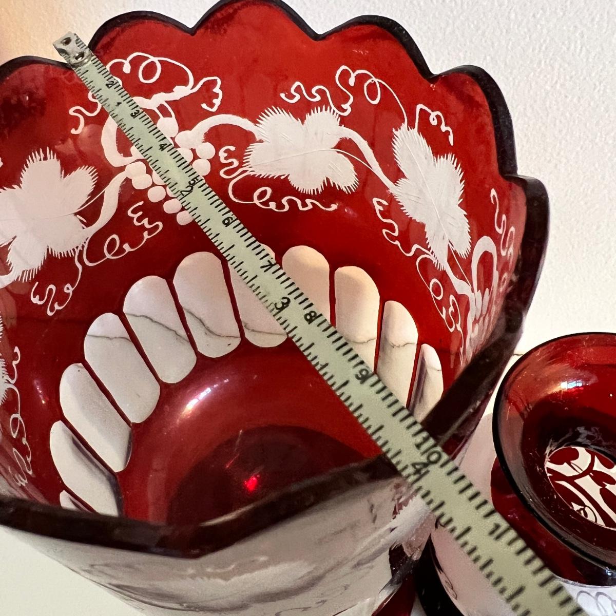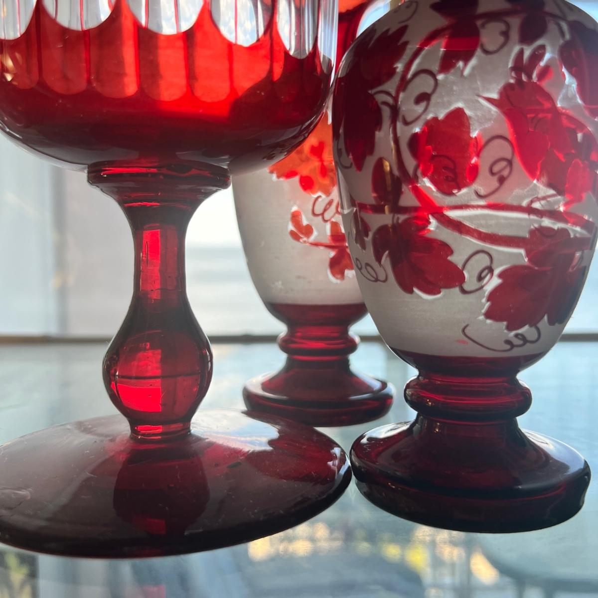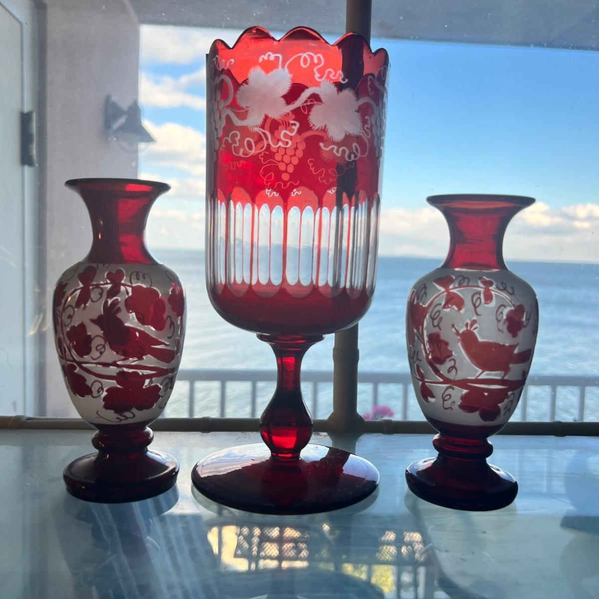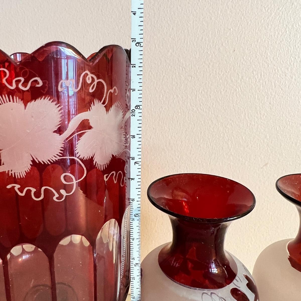 Lot Antique Czech. Bohemian Ruby Cut Glass Crystal Vases