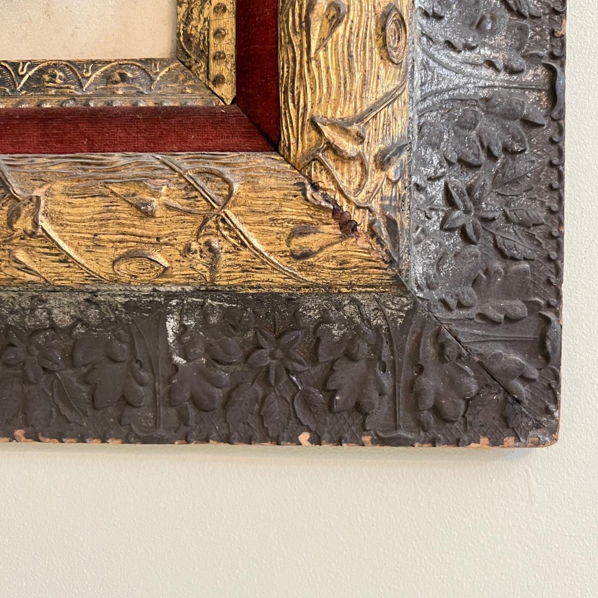 Lg. Antique Framed Portrait - Carved Wood Velvet 31"x27"