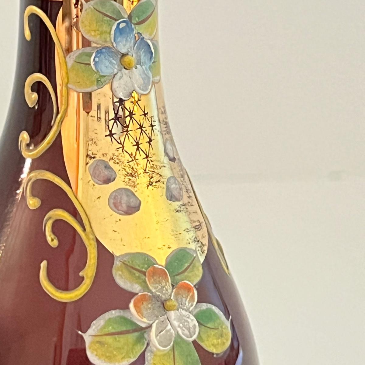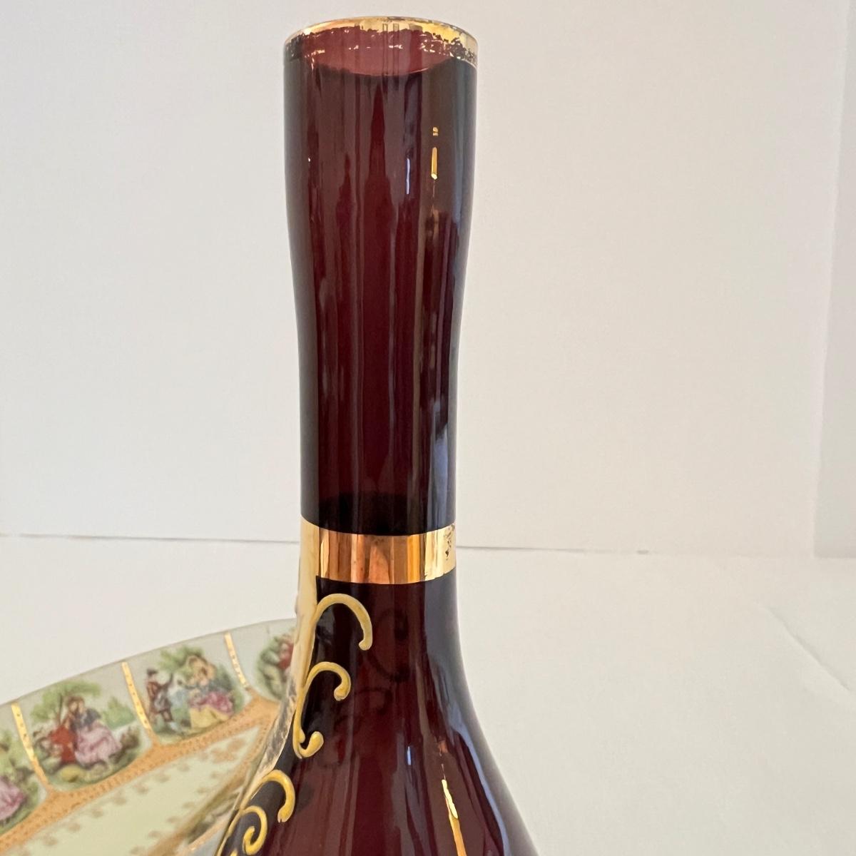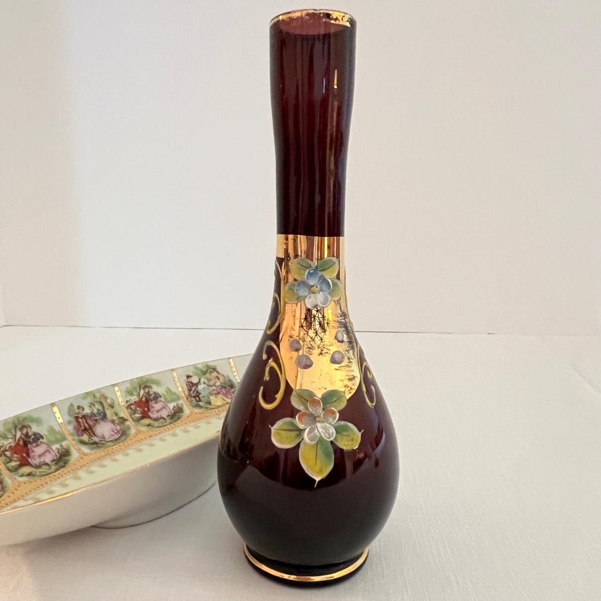 Vintage Gilded Decorative Set - Bohemian Glass Vase,