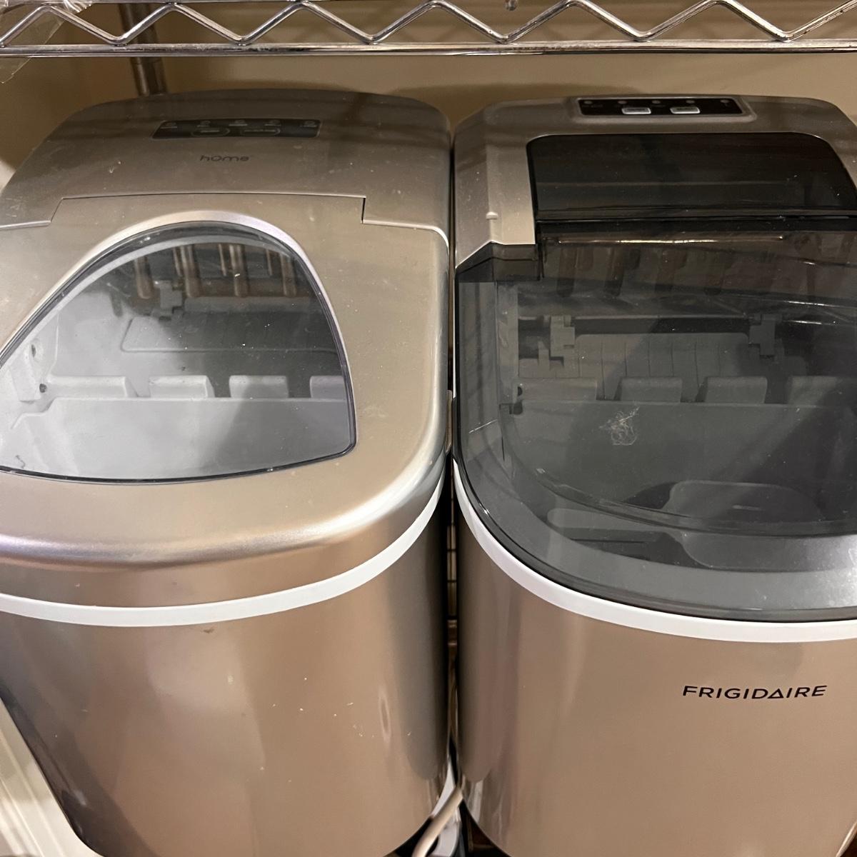 Two 26lb capacity countertop ice makers by hOmeLabs and Frigidaire.