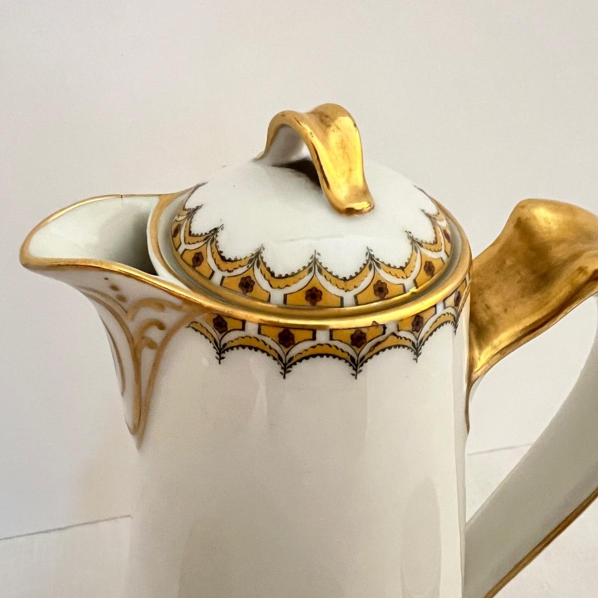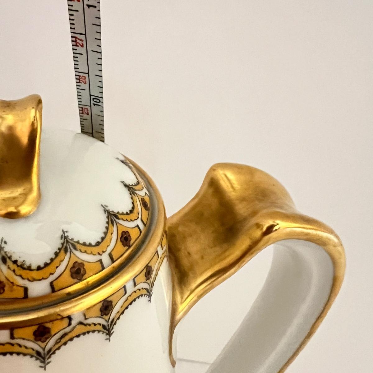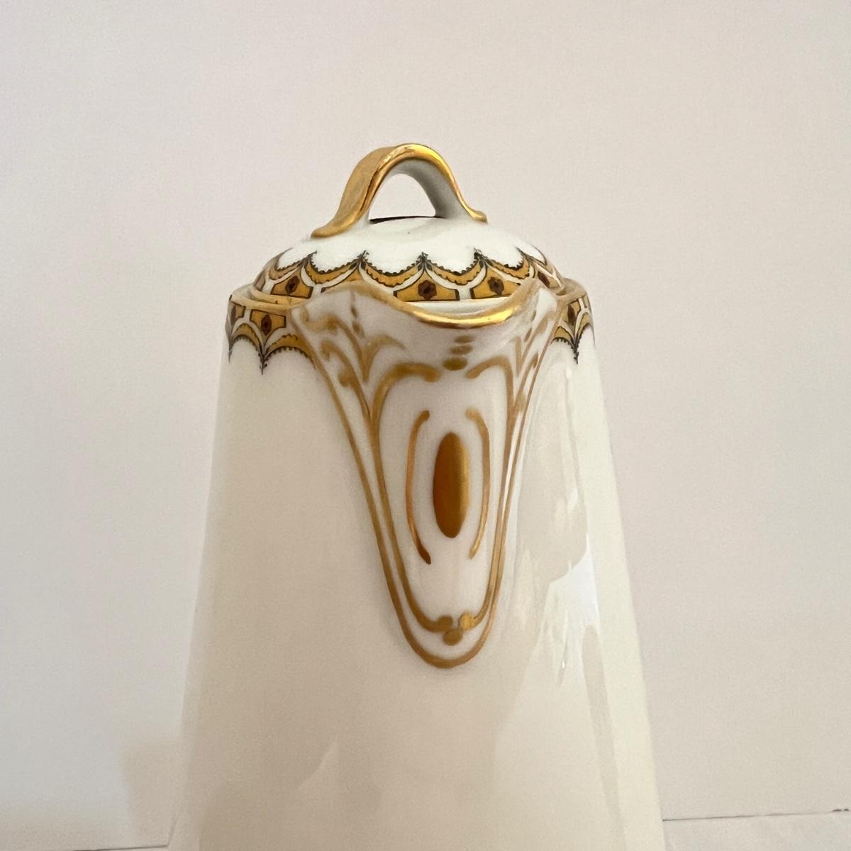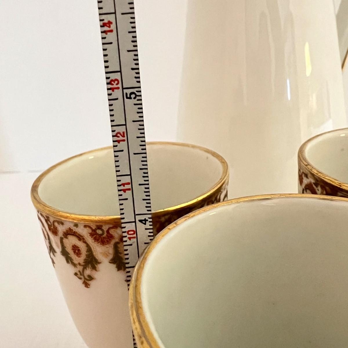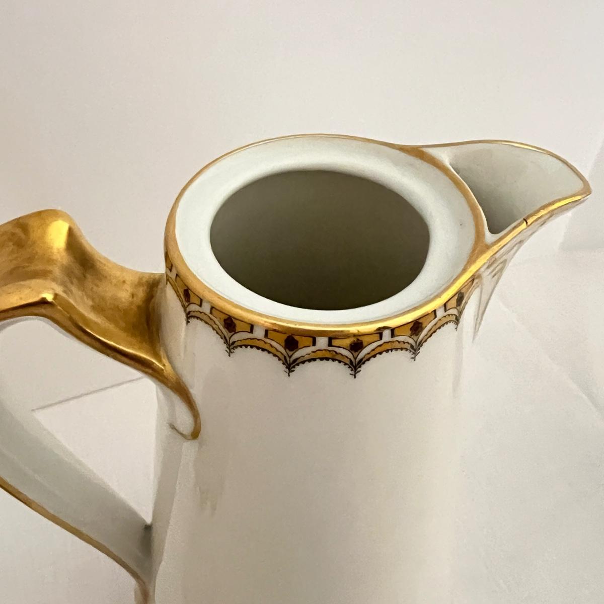3 antique Higgins & Seiter Limoges France gilded cups. 1 gilded Haviland & Co. Limoges chocolate pot. The pot and the cups do not have the exact same pattern but they do have the same color scheme and work well together.